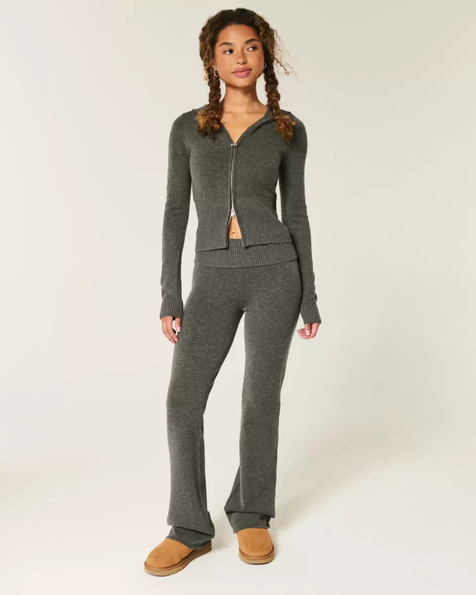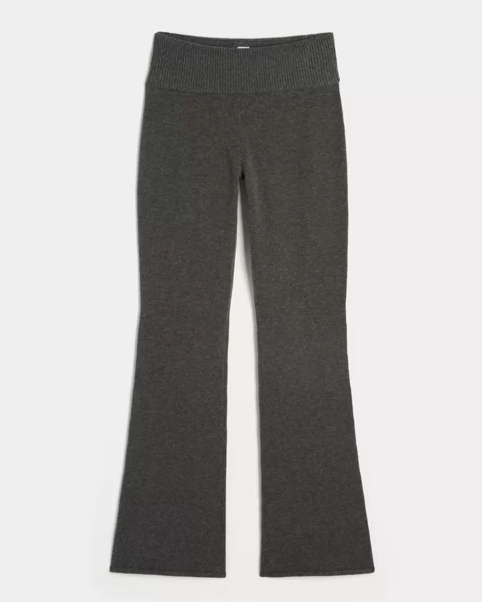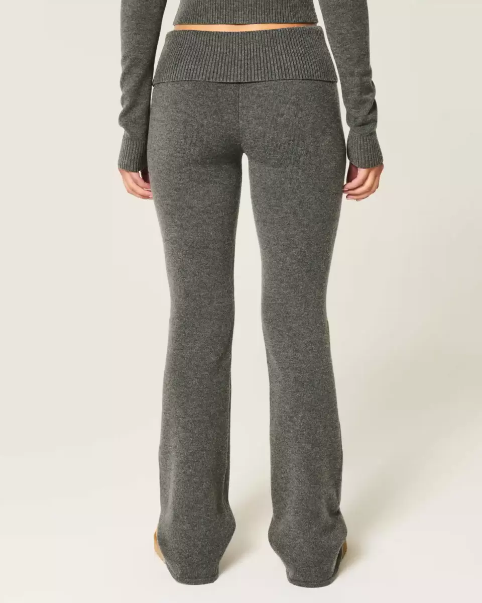 Cozy and super soft sweater-knit pants designed with a foldover waist, slim leg and boot hem. Imported.