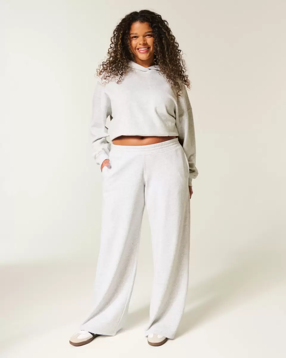 Super soft fleece sweatpants designed with a baggy leg and banded waist. Pockets.
