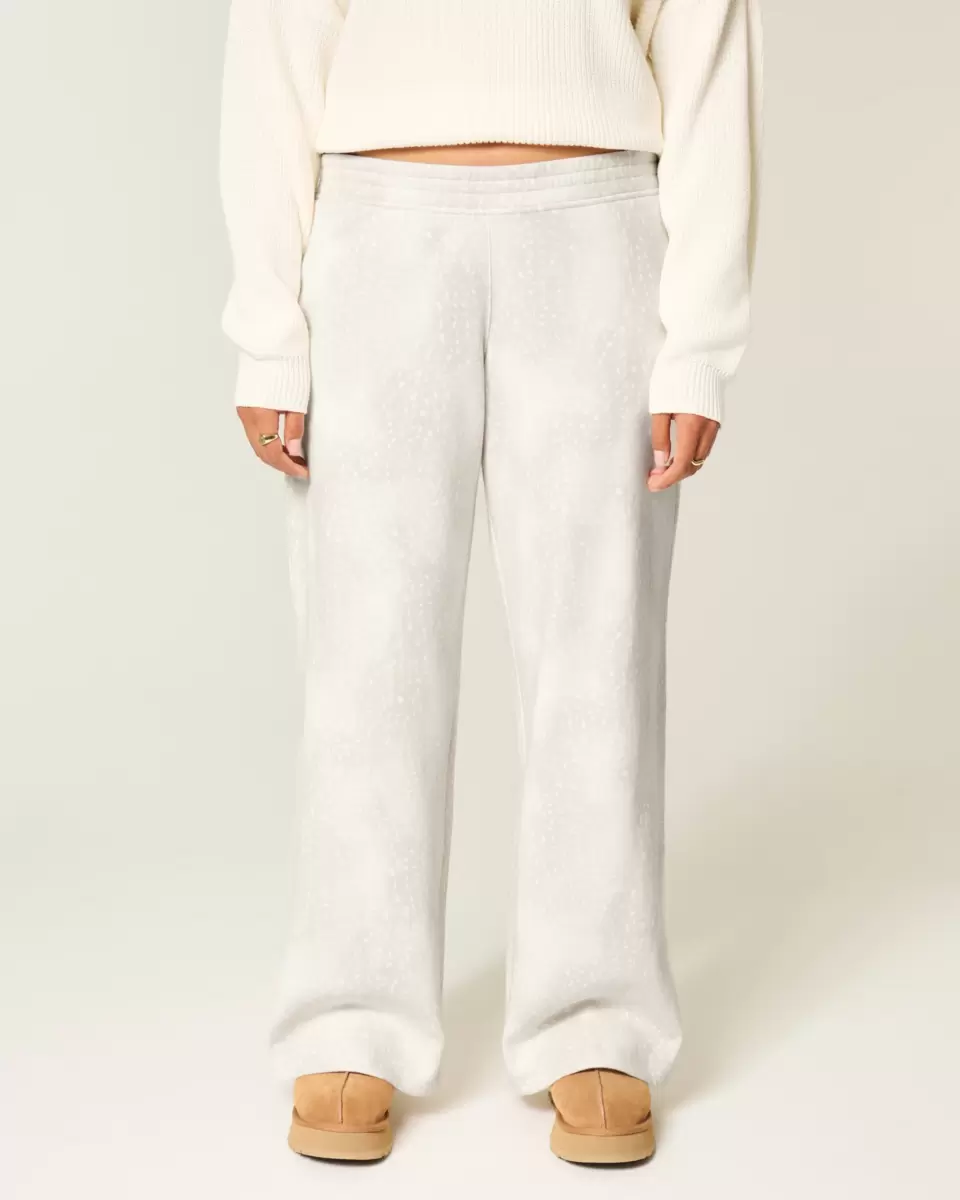 Super soft fleece sweatpants designed with a baggy leg and banded waist. Pockets, all-over doe print.