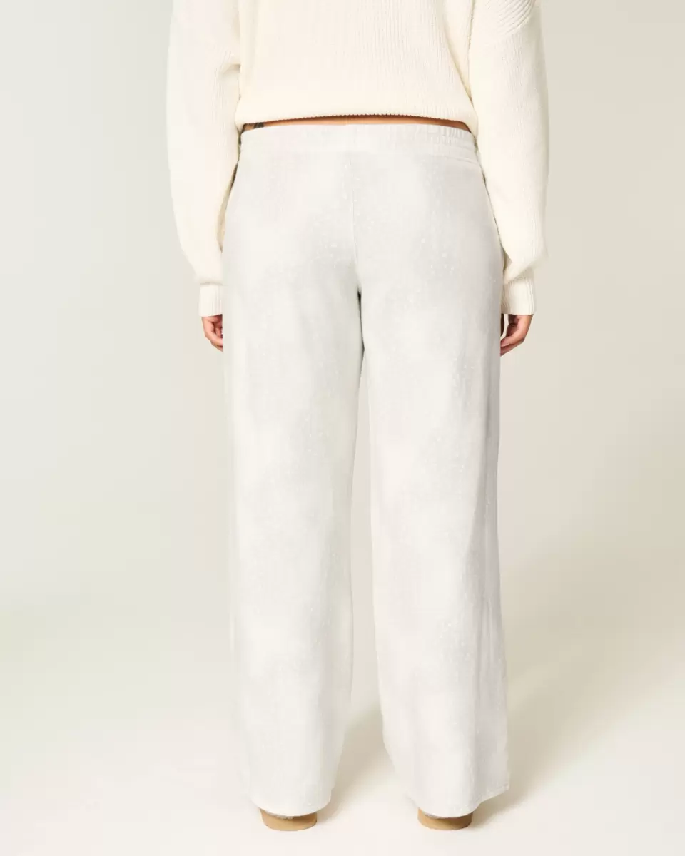 Super soft fleece sweatpants designed with a baggy leg and banded waist. Pockets, all-over doe print. Imported.