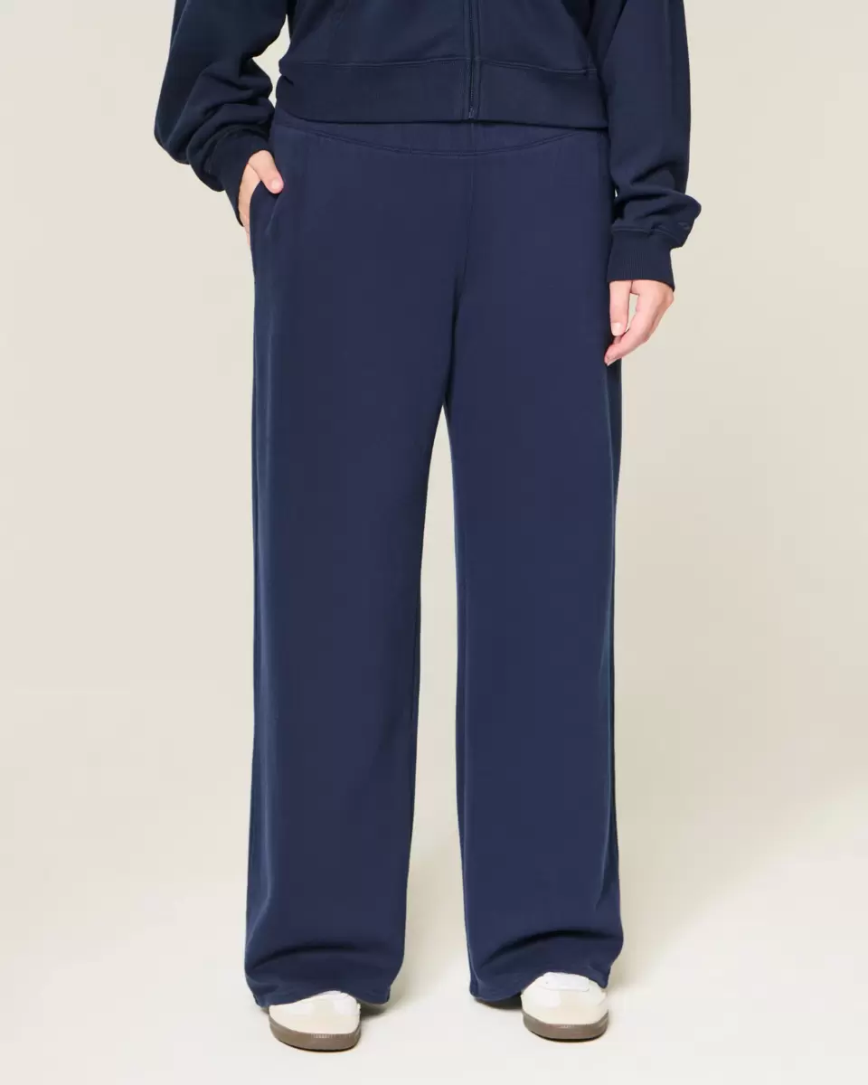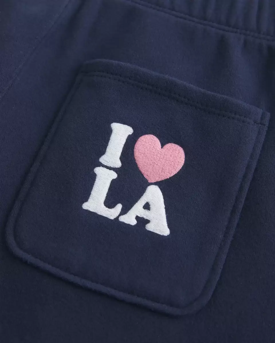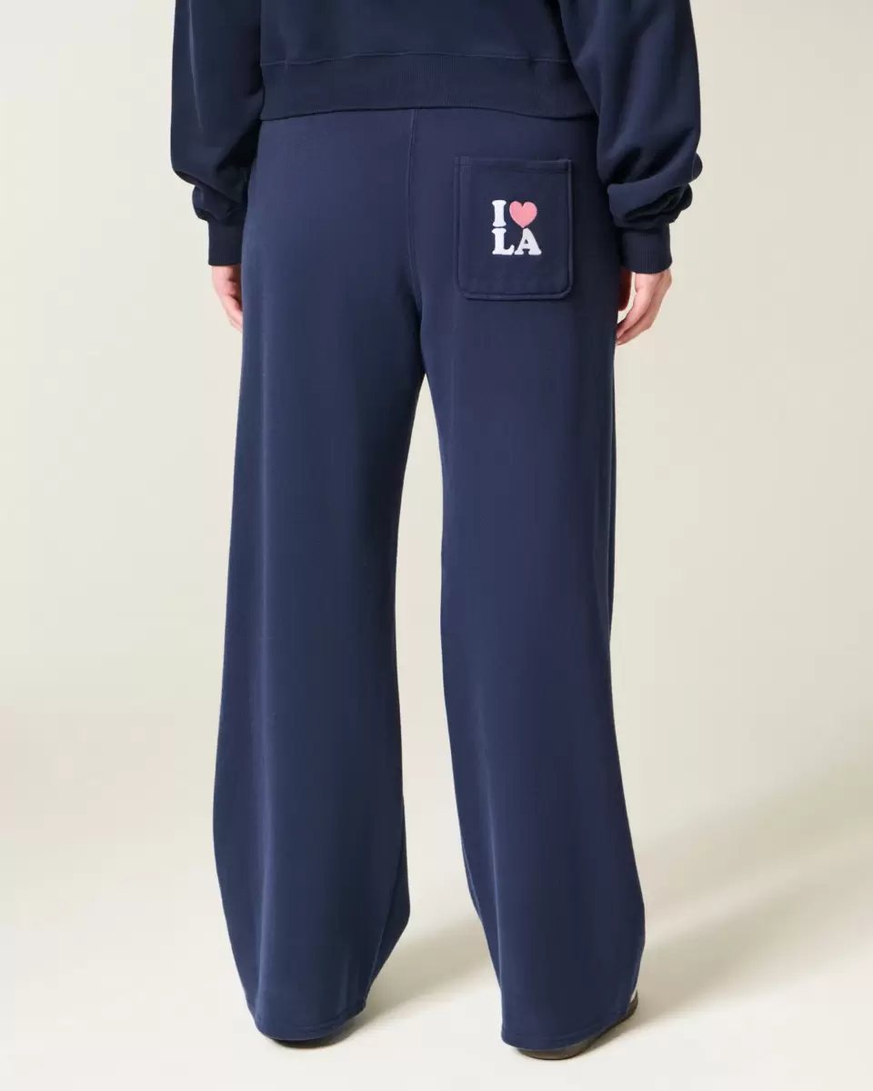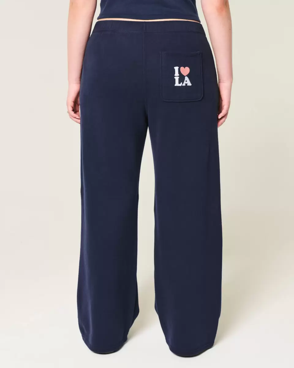 Super soft fleece sweatpants designed with a wide leg and banded waist. Pockets, I Heart LA graphic embroidery at back pocket. Imported.