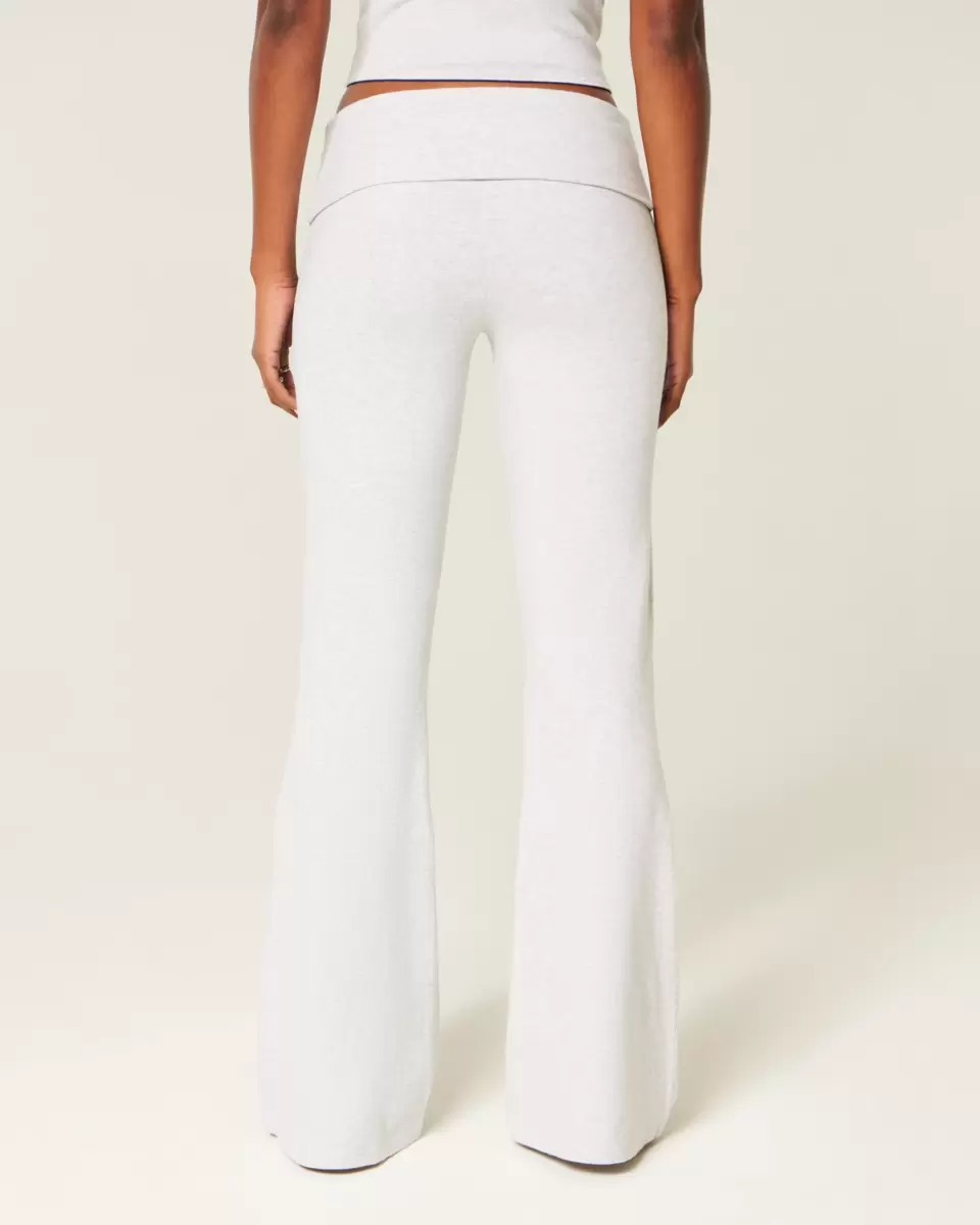 Super soft fleece pants with a mid-rise foldover waist featuring a number graphic. Flared hem. Imported.