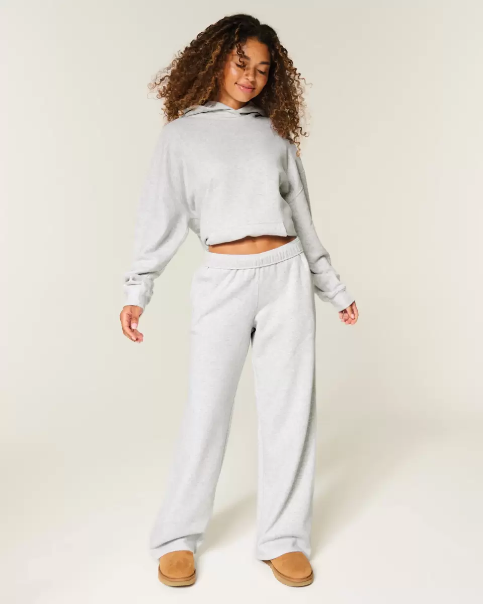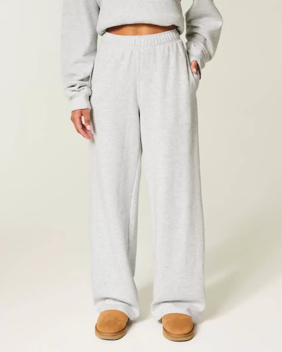 Super soft fleece sweatpants designed with a wide leg and banded waist. Pockets.