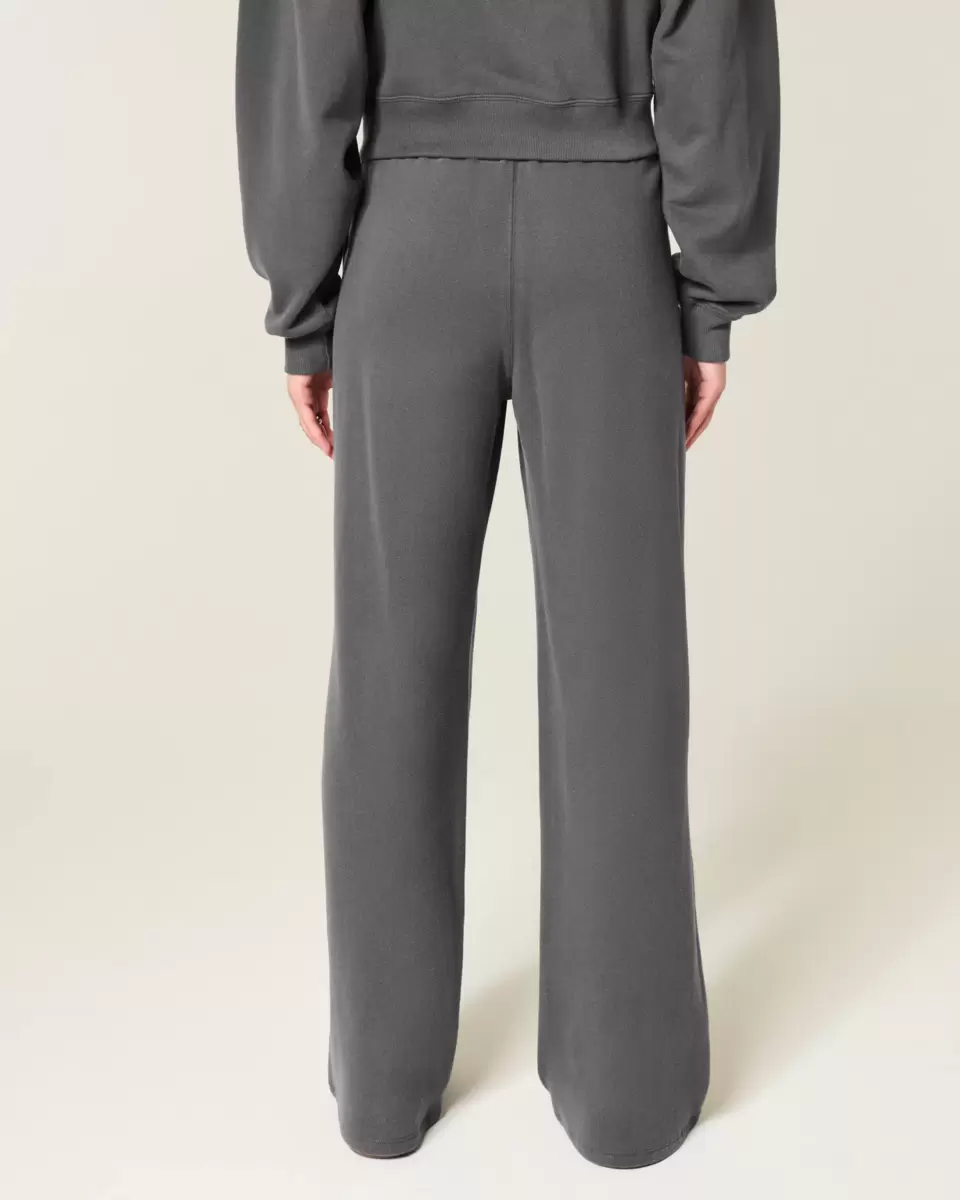 Super soft fleece sweatpants designed with a wide leg and banded waist. Pockets. Imported.