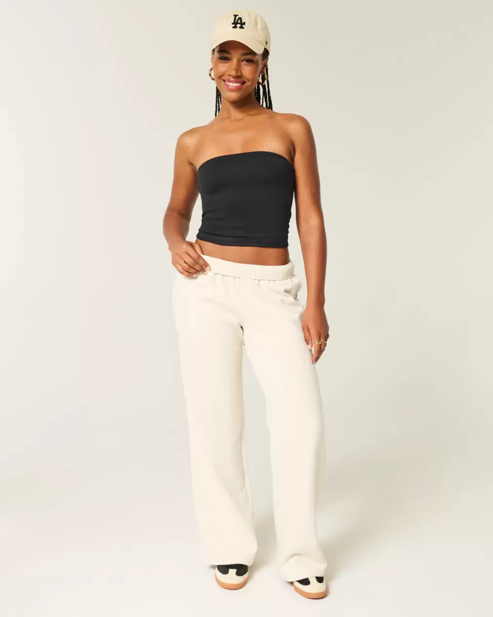 Super soft fleece sweatpants designed with a wide leg and banded waist. Pockets.