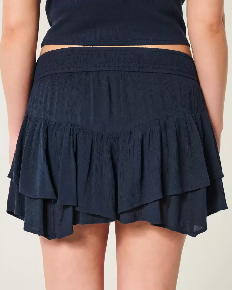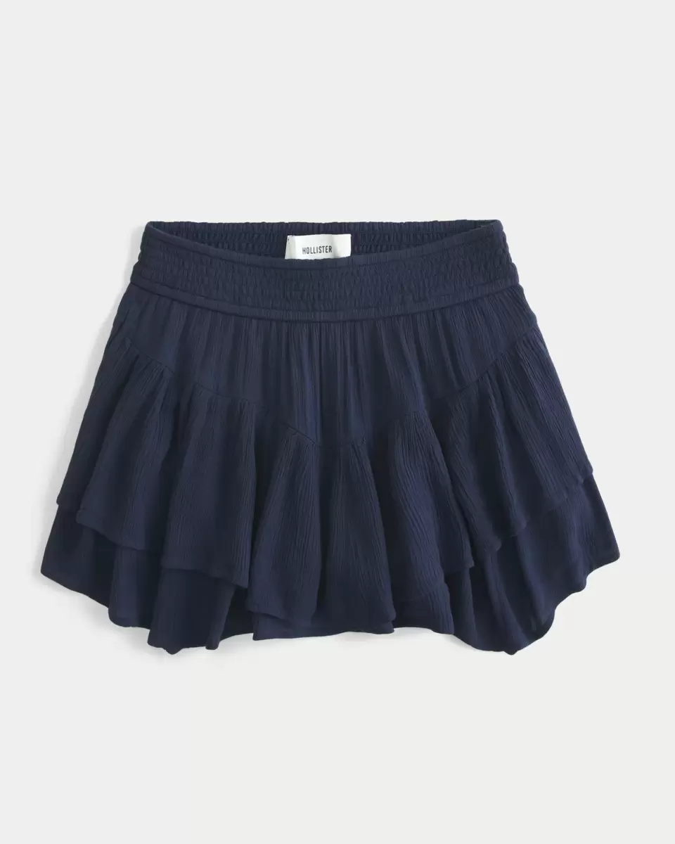 Flowy and super soft, this mini skort is designed with a mid-rise waist and features hidden shorts, pockets, a smocked waistband and asymmetrical hem. Imported.