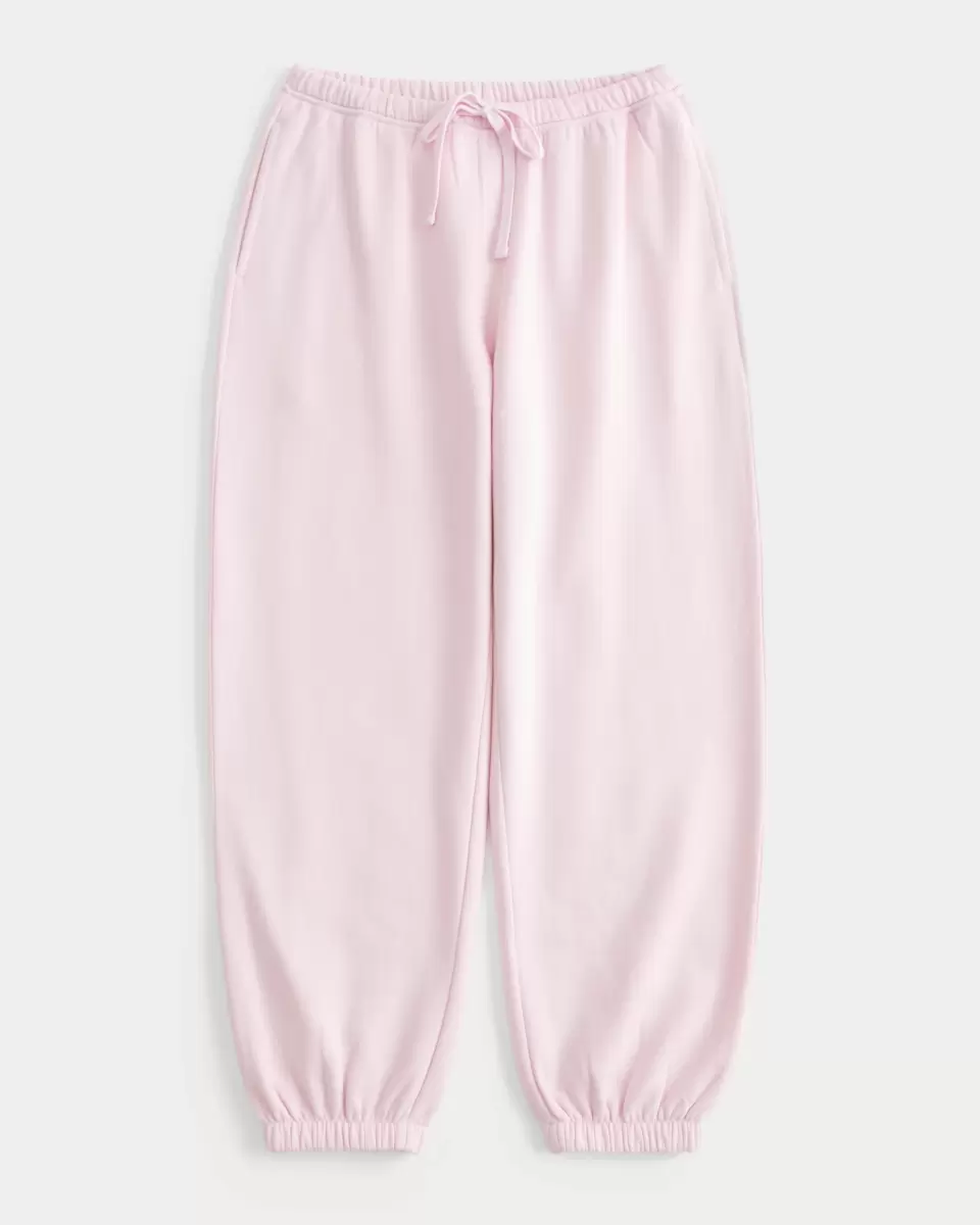 Super soft fleece joggers designed with a baggy leg, banded hems and drawstring waist. Pockets. Imported.