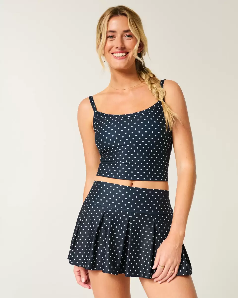 Cute and comfy, this active skortie is designed with a drop waist, pleats and pocket. Imported.
