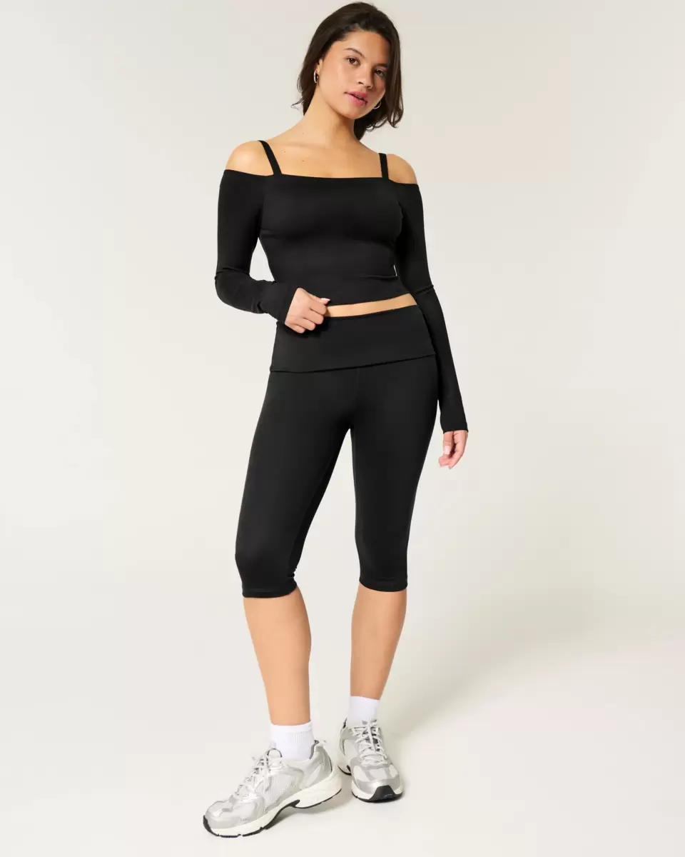 These cute capri pants are designed in our breathable, 4-way stretch, moisture-wicking Recharge fabric with a super soft, brushed feel. Foldover waist. Imported.