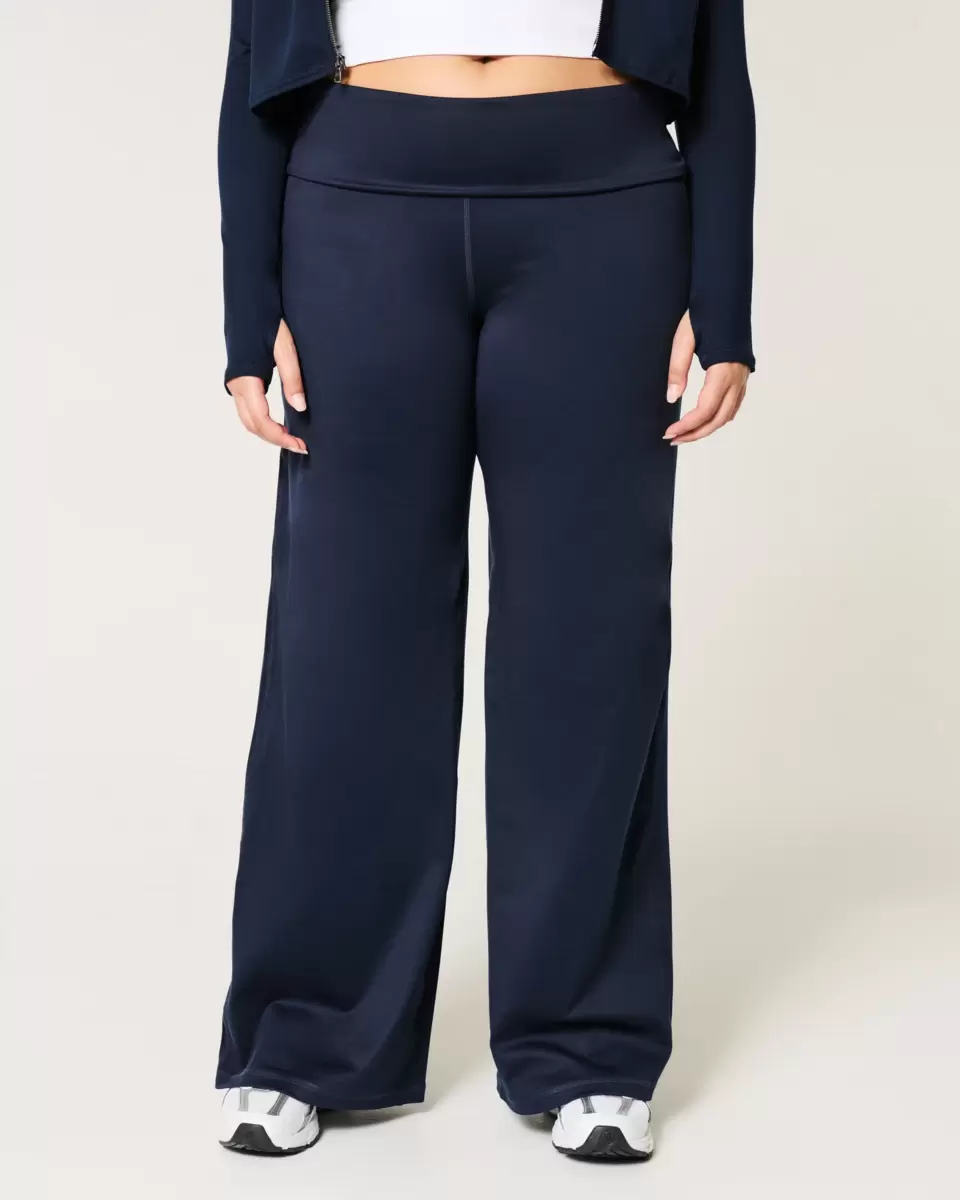 Designed in our breathable, 4-way stretch, moisture-wicking Recharge fabric with a super soft, brushed feel. Foldover waist, wide-leg silhouette. Imported.