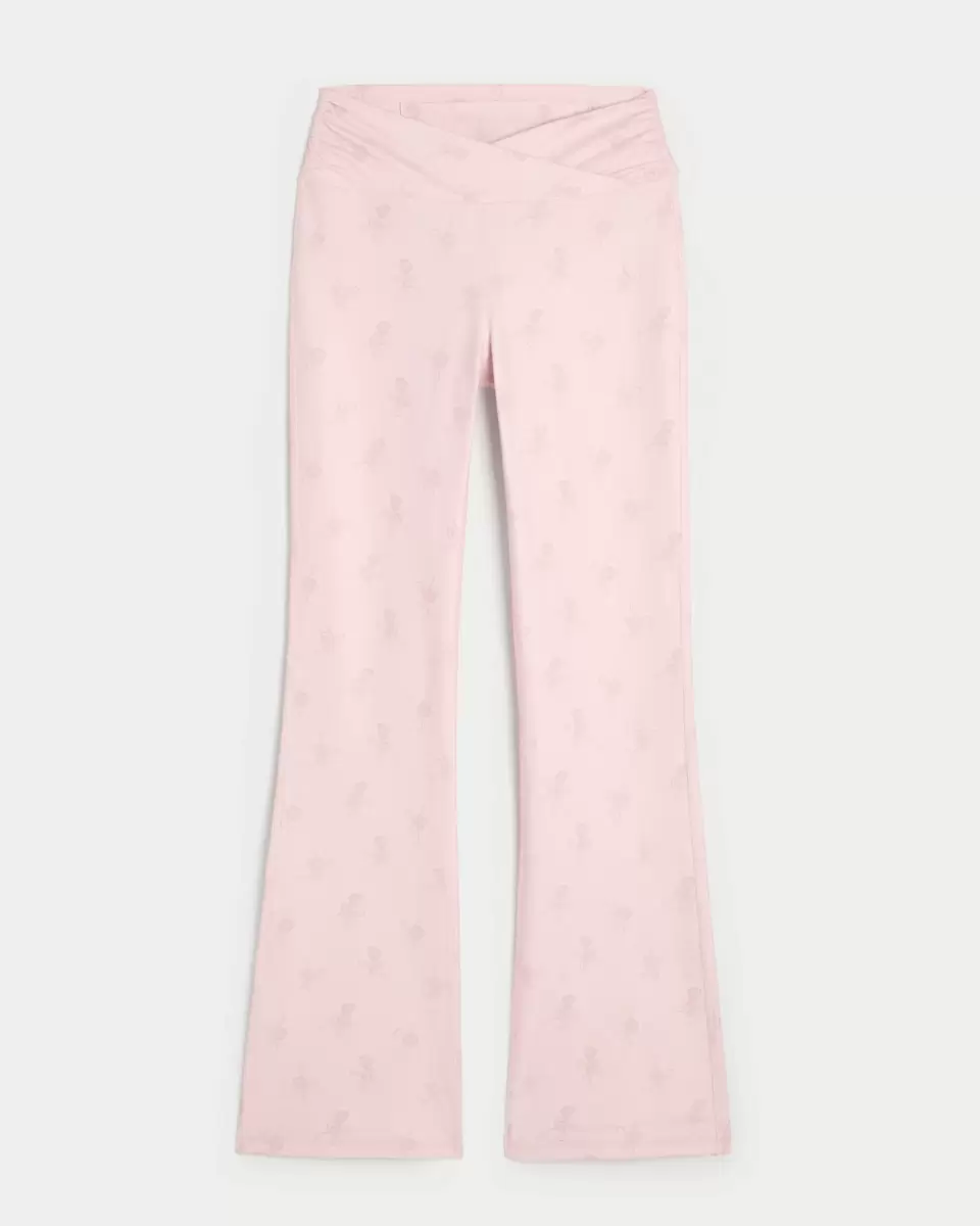 These pants are designed in our breathable, 4-way stretch, moisture-wicking Recharge fabric with a super soft, brushed feel. Slim leg, boot hem, wrap-style waist, all-over heart charm graphic pattern. Imported.