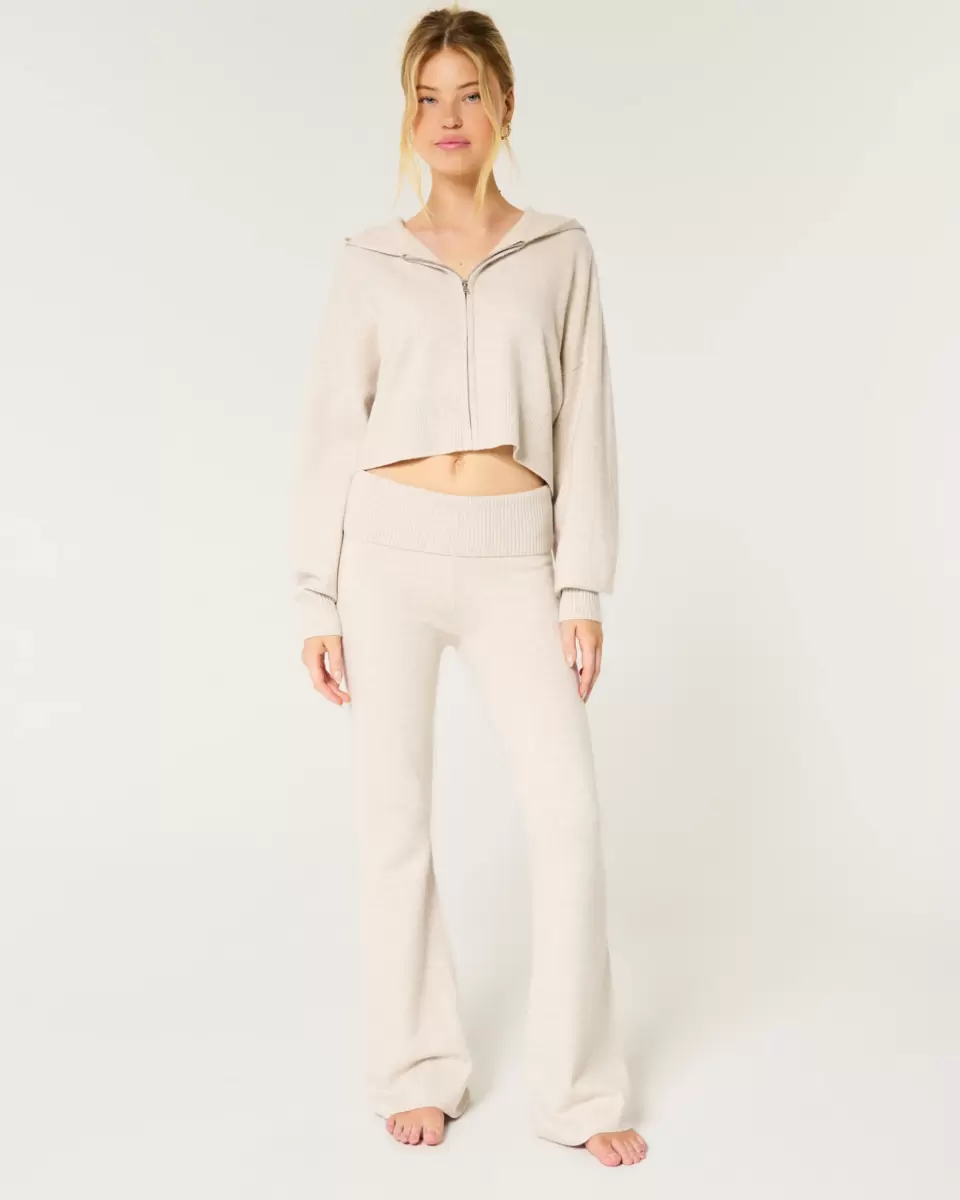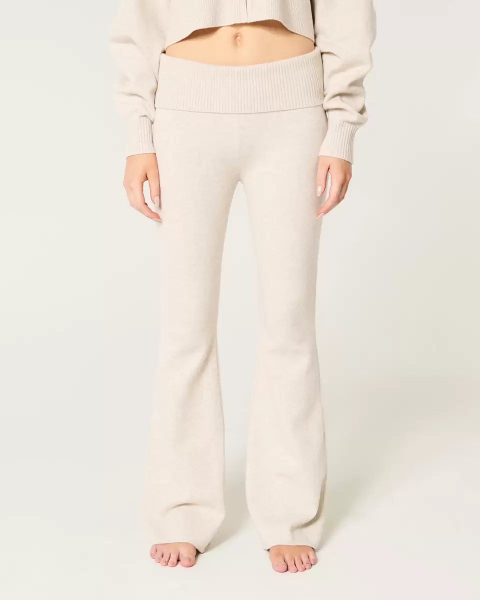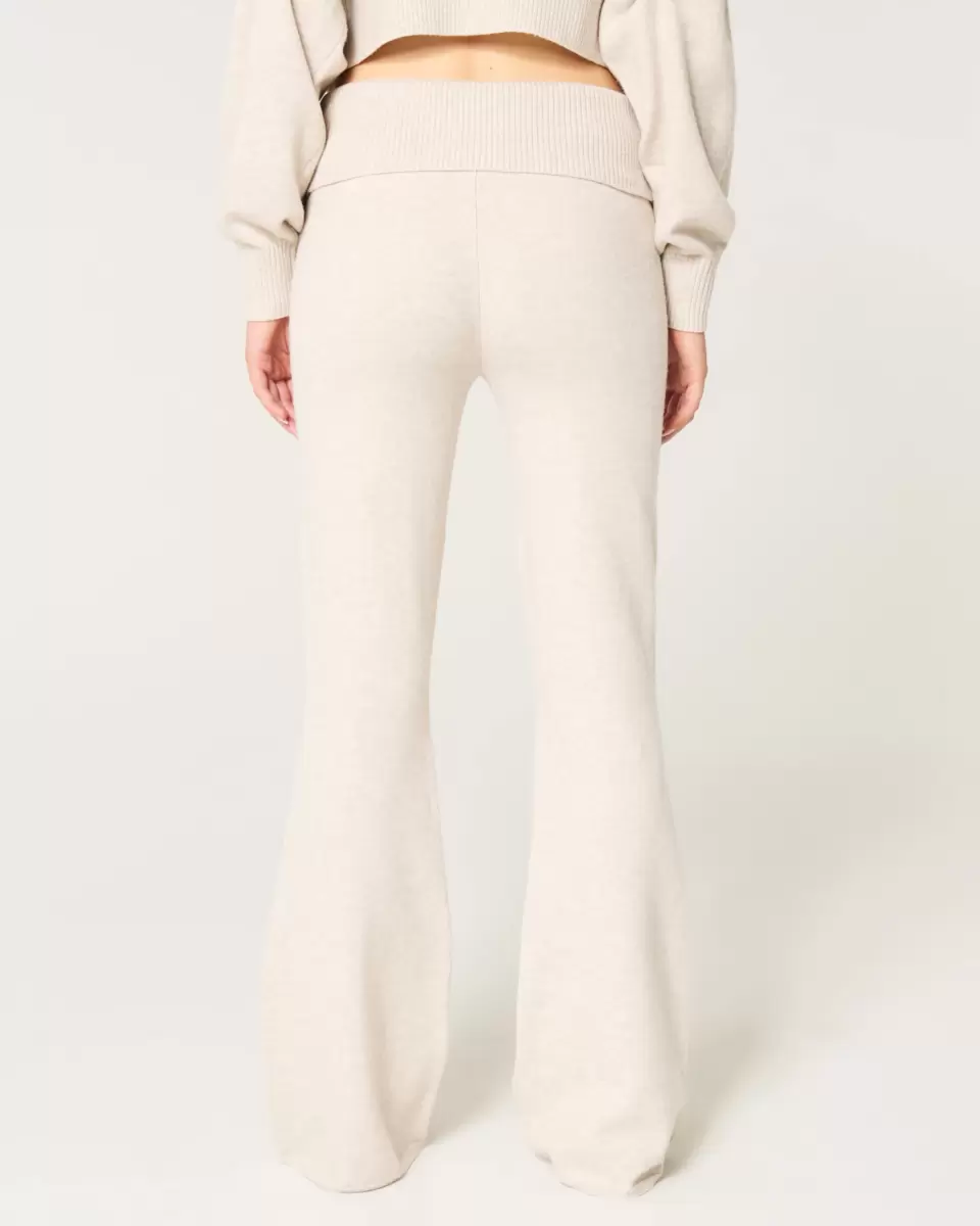 Cute and cozy pants in super soft sweater-knit fabric designed with a flared silhouette from knee to hem. Foldover waist. Imported.