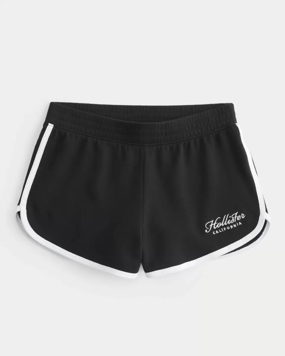 Super soft fleece shorts designed with a sporty silhouette and curved hems. Banded high-rise waist, embroidered logo detail. Imported.