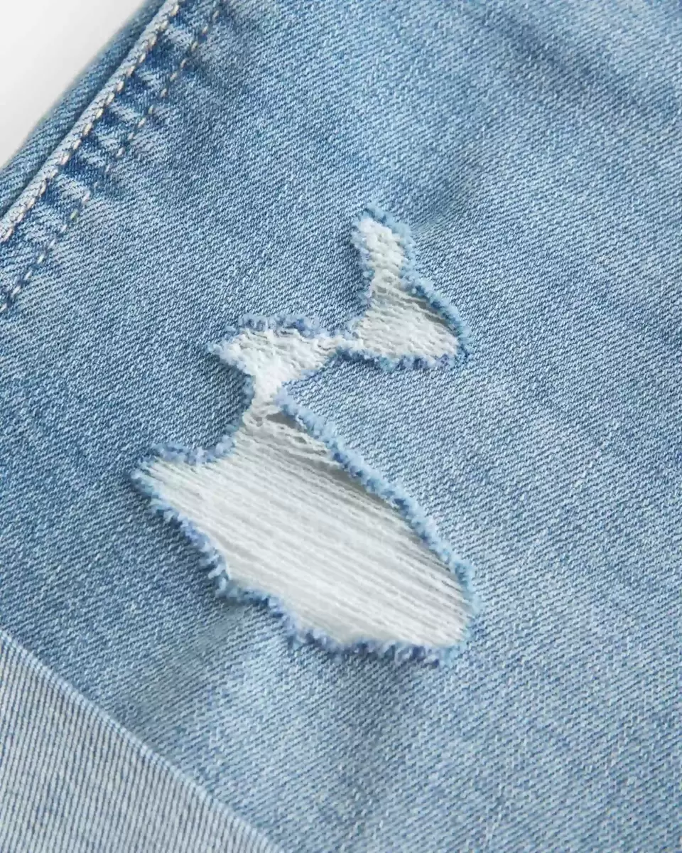 Be the first to review “High-Rise Ripped Medium Light Wash Denim Shortie Shorts”