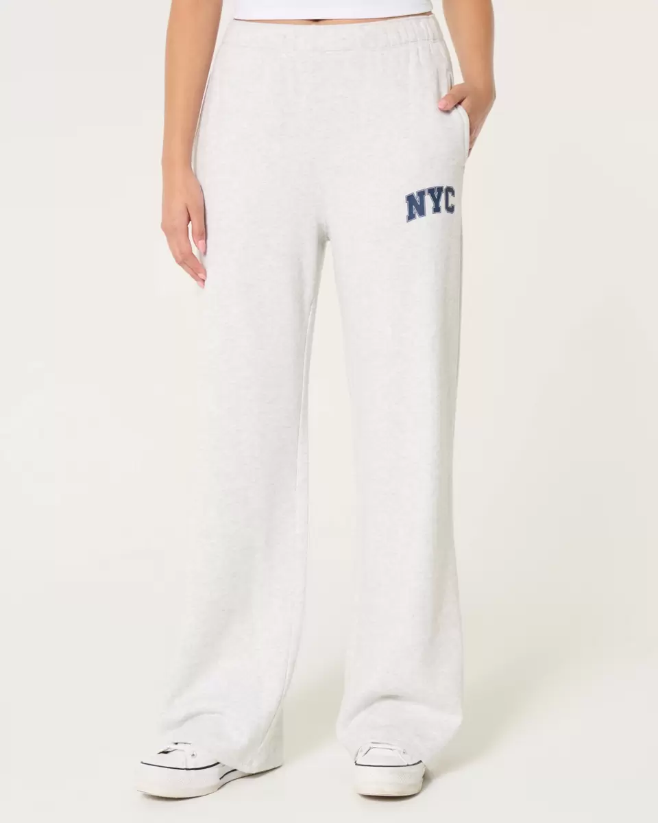 Super soft fleece pants an NYC print graphic, soft banded waist and pockets. Wide-leg pants. Imported.
