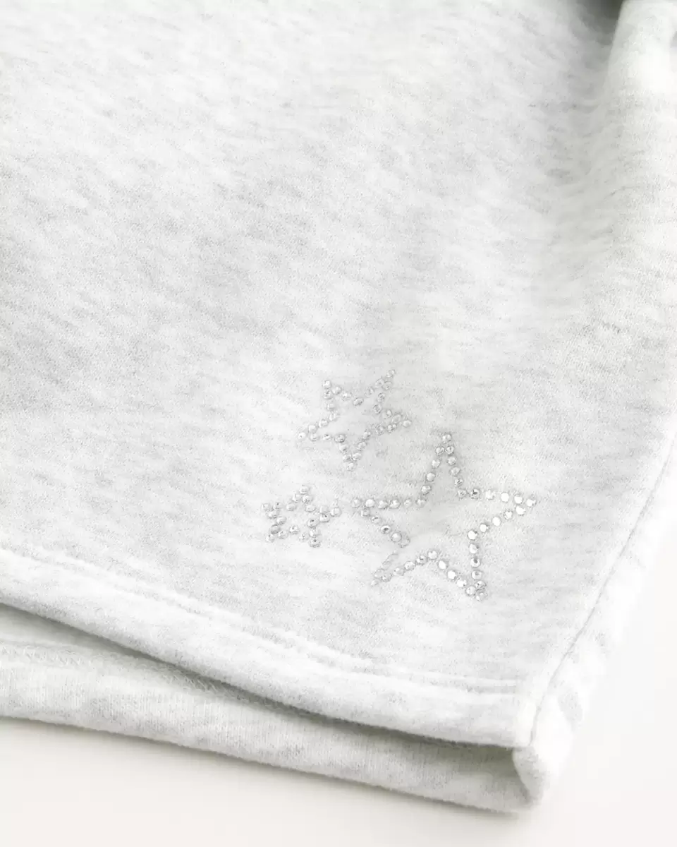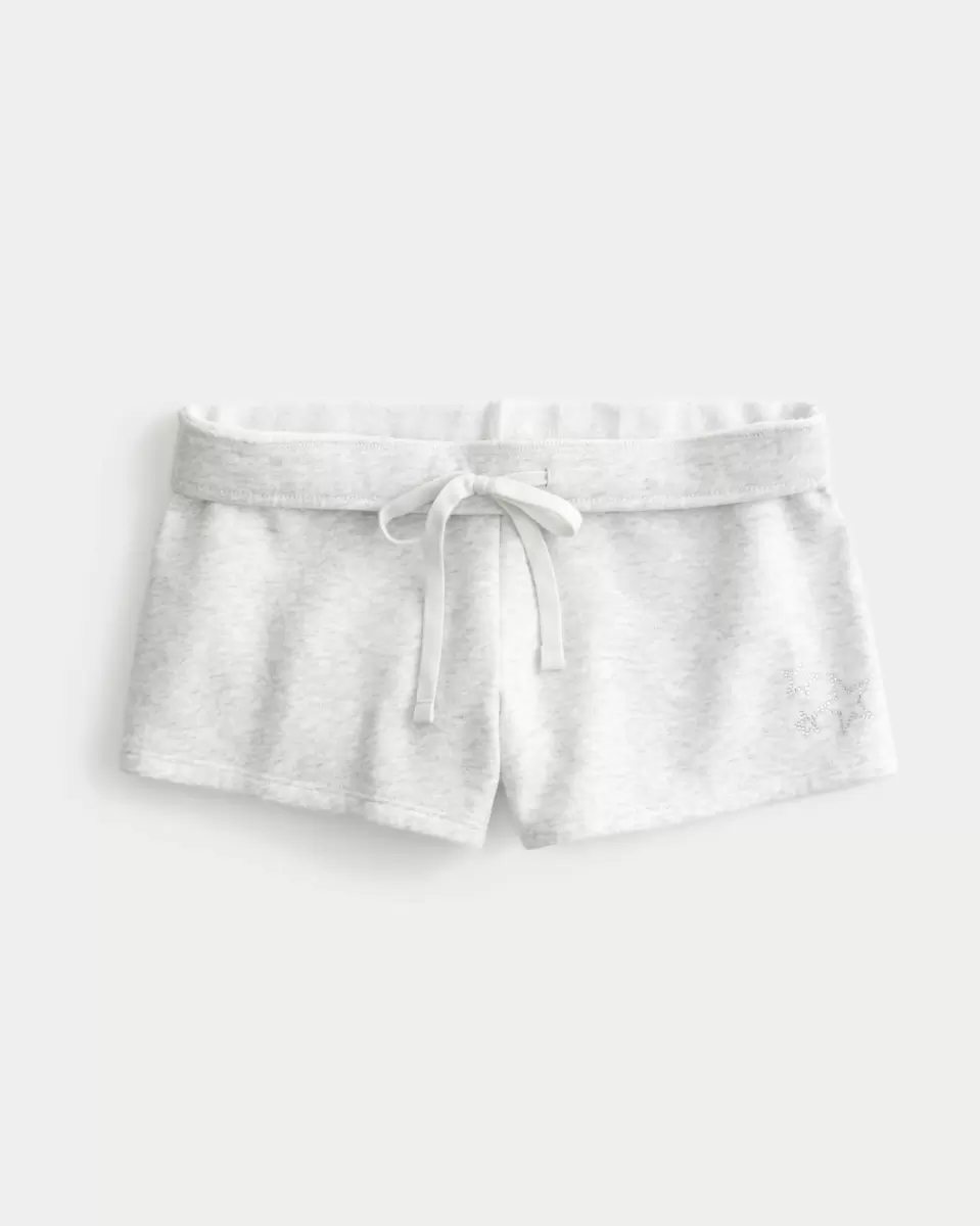Cute and super soft fleece mini shorts with cute rhinestone star graphics. Soft mid-rise drawstring waist can be folded over to low-rise. Imported.