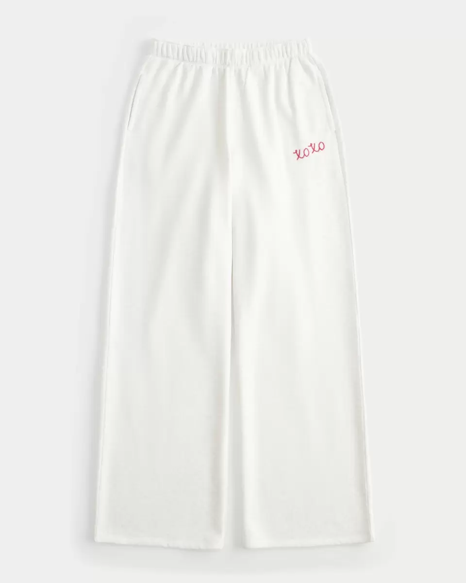 Super soft fleece sweatpants designed with a wide-leg silhouette. Banded ultra high-rise waist, pockets, XOXO graphic embroidery. Imported.