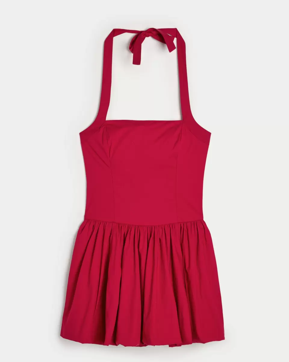 Unbelievably soft and super cute, this dress features a bubble hem and adjustable halter tie/bow neckline. Imported.
