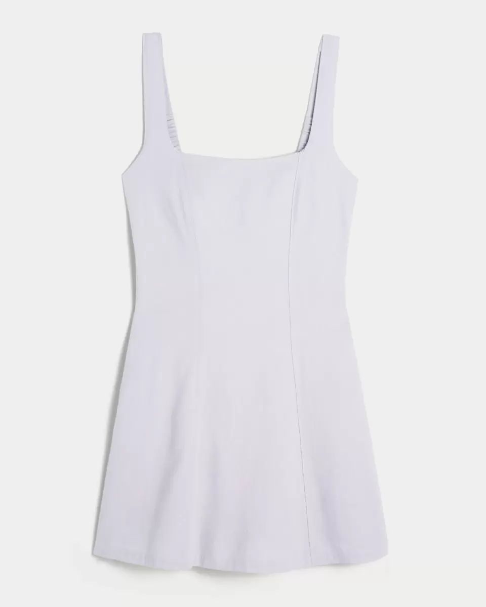 This cute and super soft mini dress is designed with a structured silhouette. Seam details, soft linen-blend fabric. Imported.