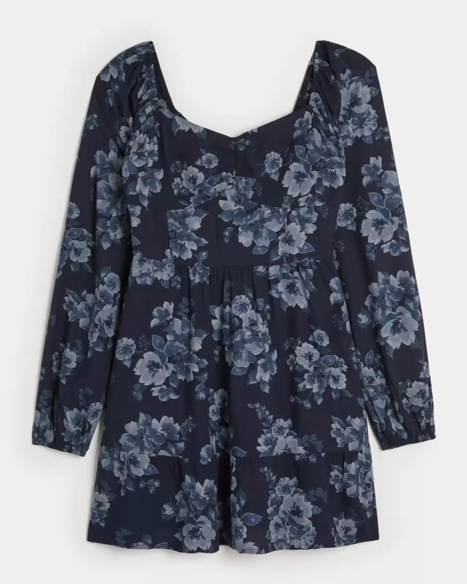 Super soft and pretty, this long-sleeve dress features pockets and a cinched bust. Sweetheart neckline. Imported.
