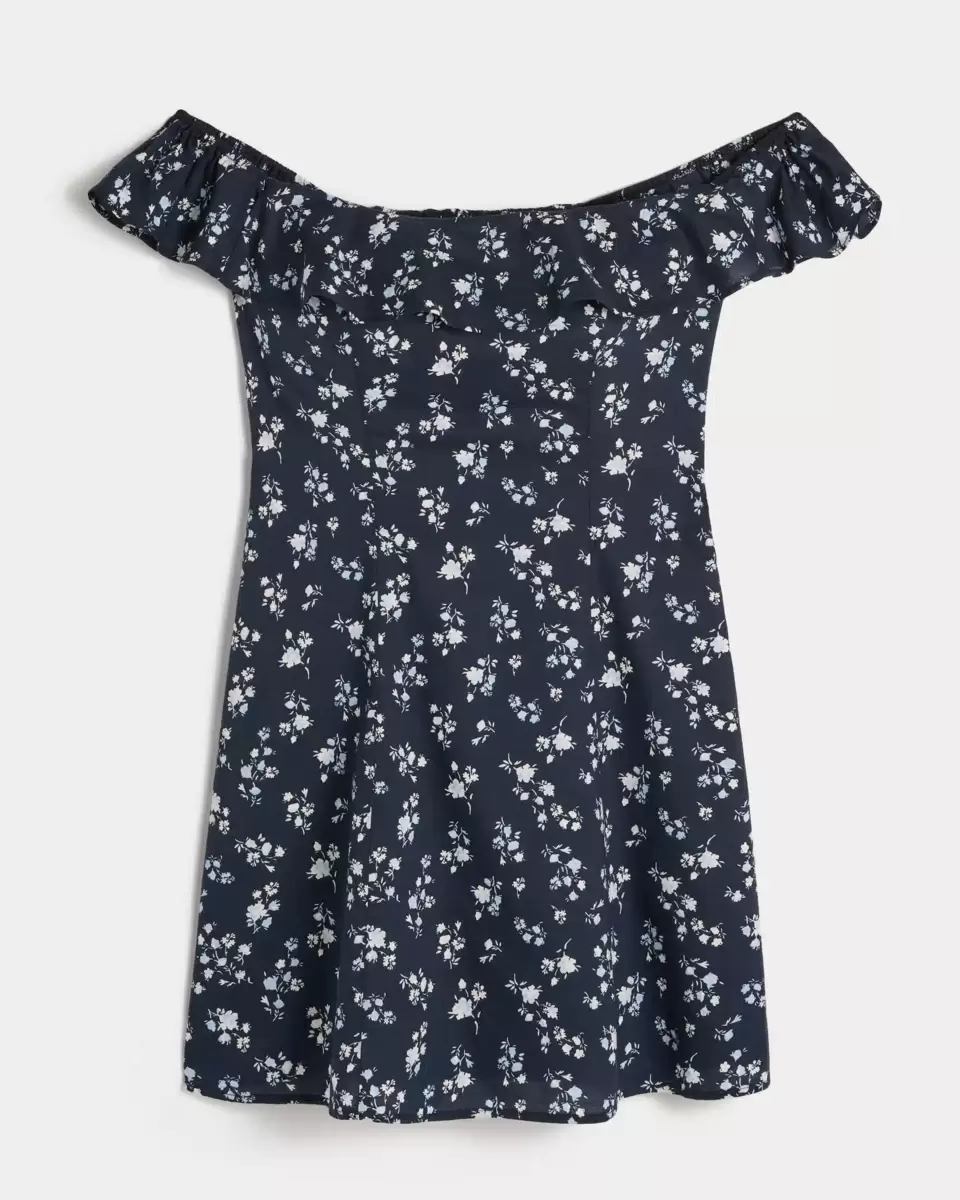Off-the-Shoulder A-Line Ruffle Mini Dress