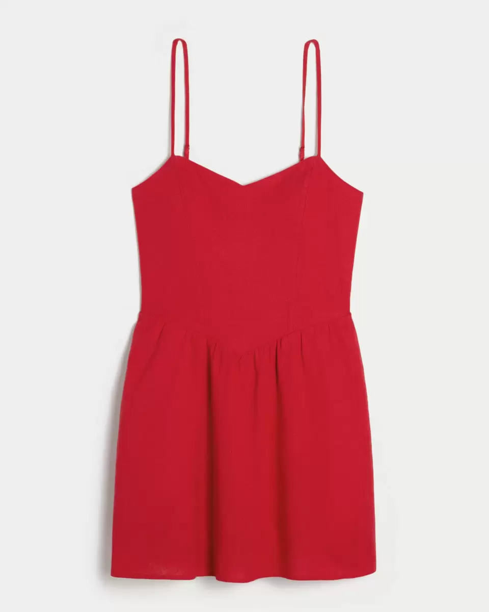 This super easy and cute linen-blend mini dresses has a pretty open back detail, removable pads and built-in shorts. Pockets. Imported.