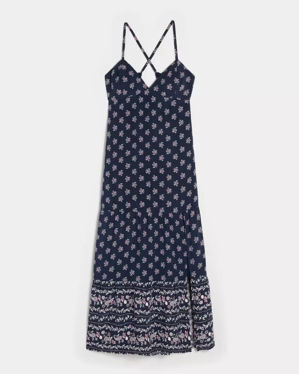 A pretty and super soft maxi-length dress with cross-back straps and an open back detail. Split hem detail. Imported.