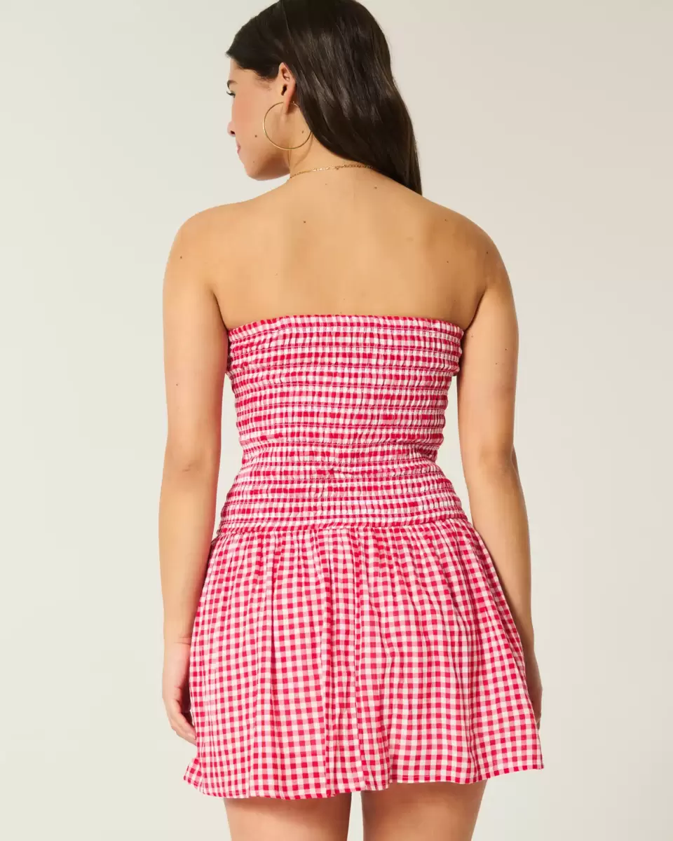 A super cute and easy strapless mini dress with a comfortable smocked bodice. Built-in shorts, removable straps, pockets. Imported.