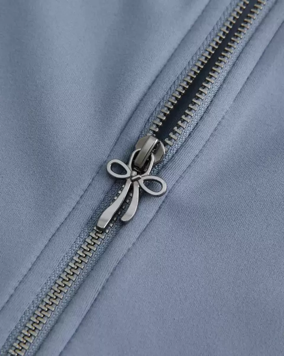 Designed in our breathable, 4-way stretch, moisture-wicking Recharge fabric with a super soft, brushed feel. Double zipper closure, front pockets, long sleeves with thumb openings, side tie details. Imported.