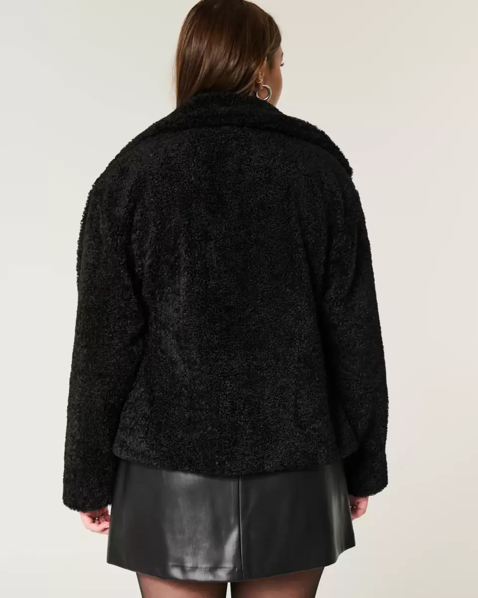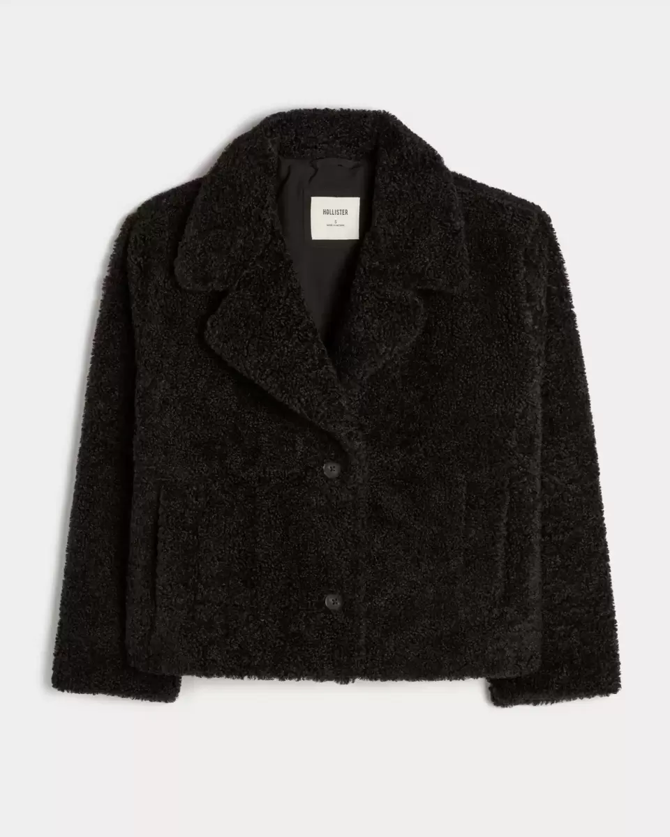 This cute and cozy peacoat features a super soft sherpa exterior and button closure. Collar, front pockets, interior pocket, fully lined. Imported.