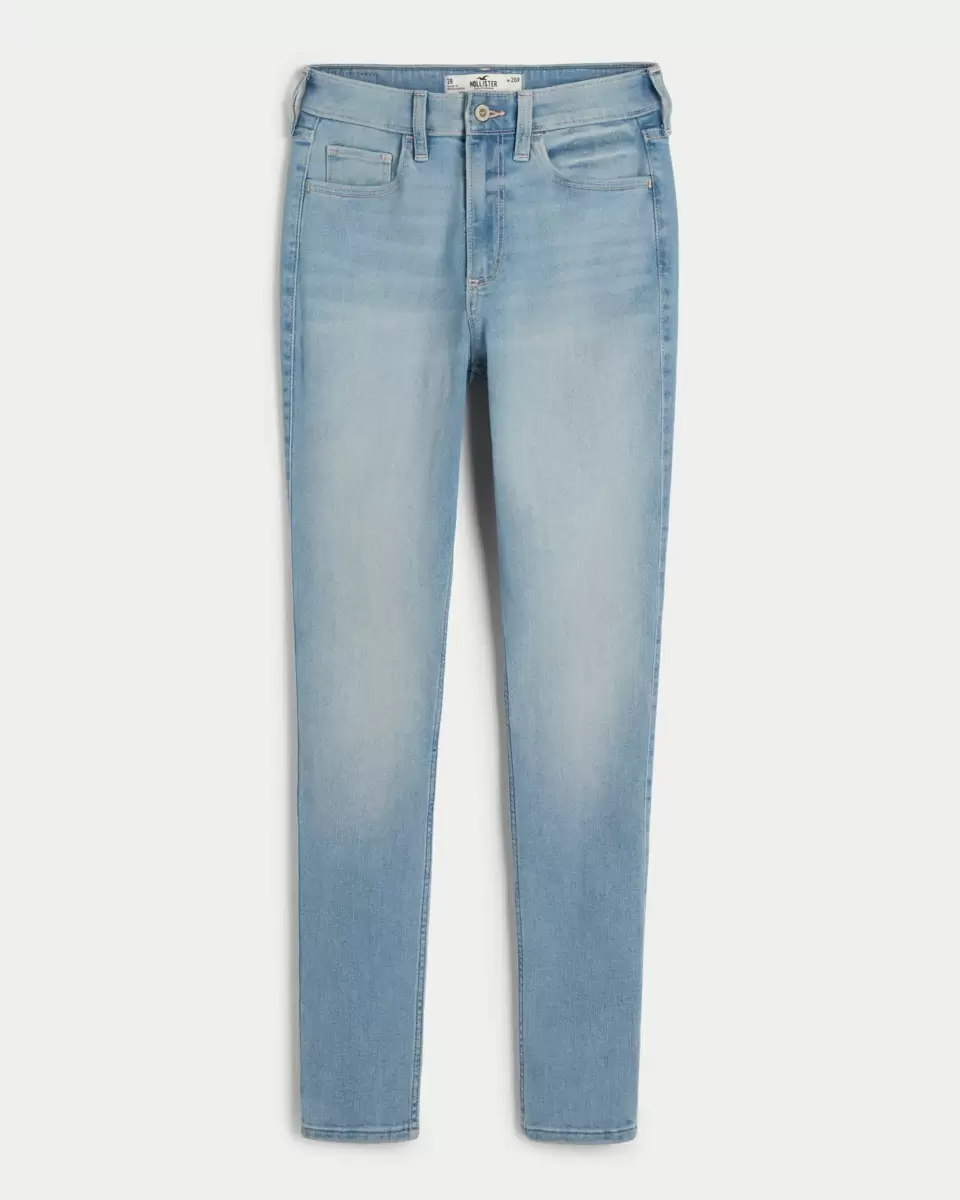 Designed in our signature slim fit, these medium wash super skinny jeans feature fading and whiskering. Curvy high-rise waist. Imported.