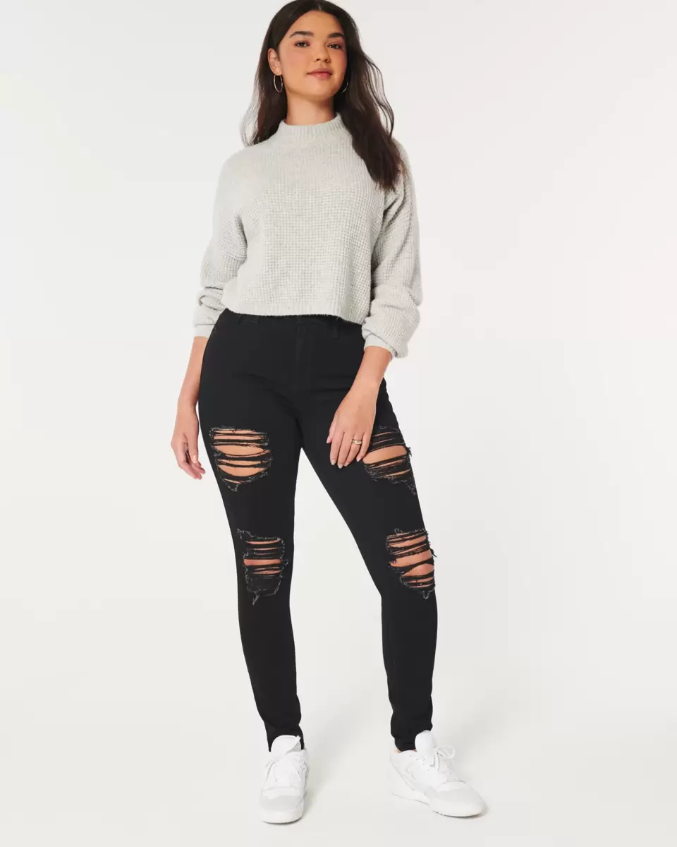 Designed in our signature slim fit with our super skinny leg opening, these ripped black jeans feature our ultra-comfortable Soft Stretch denim. High-rise waist. Imported.
