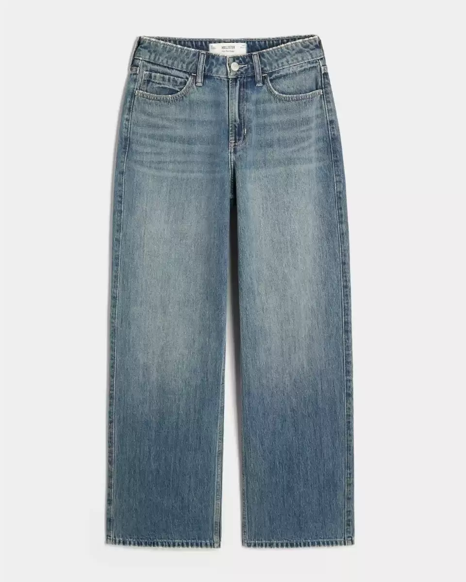Comfortable denim jeans designed with a flattering high-rise waist and baggy leg. Fading, whiskering. Imported.