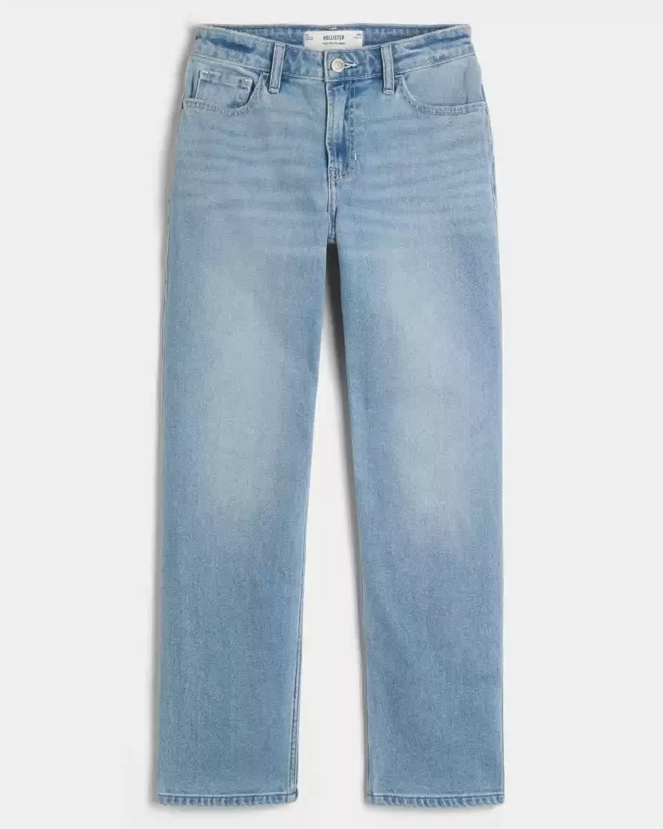 Cute and comfortable jeans in a light wash with fading and whiskering, designed with a flattering high-rise waist and straight leg. Imported.