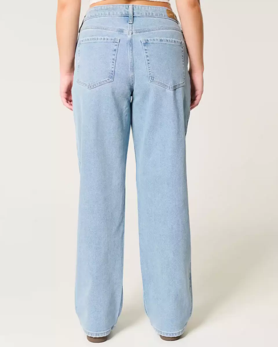 Your new fave jeans are designed with a high-rise waist and relaxed leg. Medium wash denim. Imported.