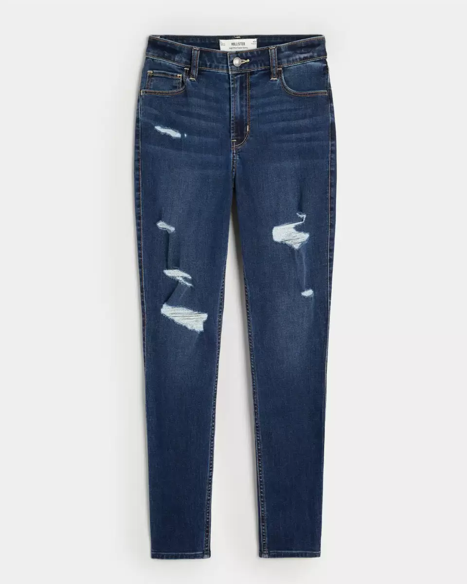 Designed in our signature slim fit, these dark wash super skinny jeans feature fading, whiskering and ripped details. High-rise waist, stretch. Imported.