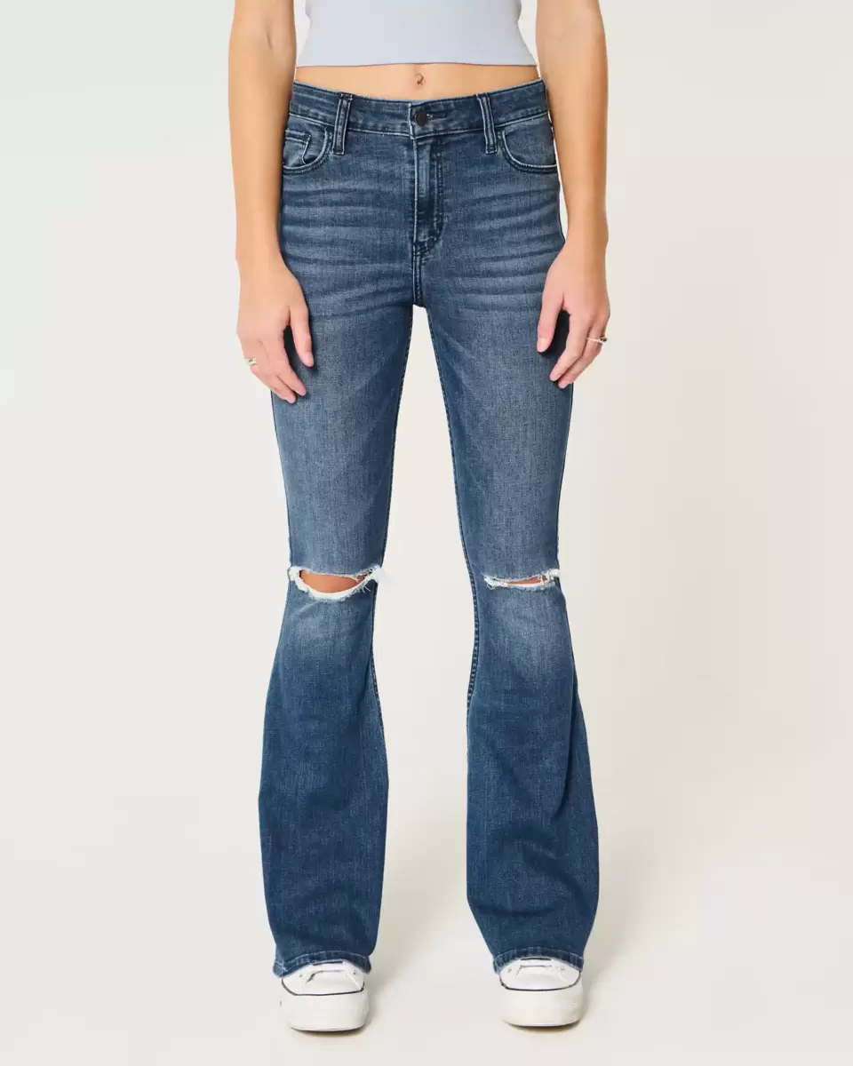 High-Rise Ripped Medium Wash Flare Jeans