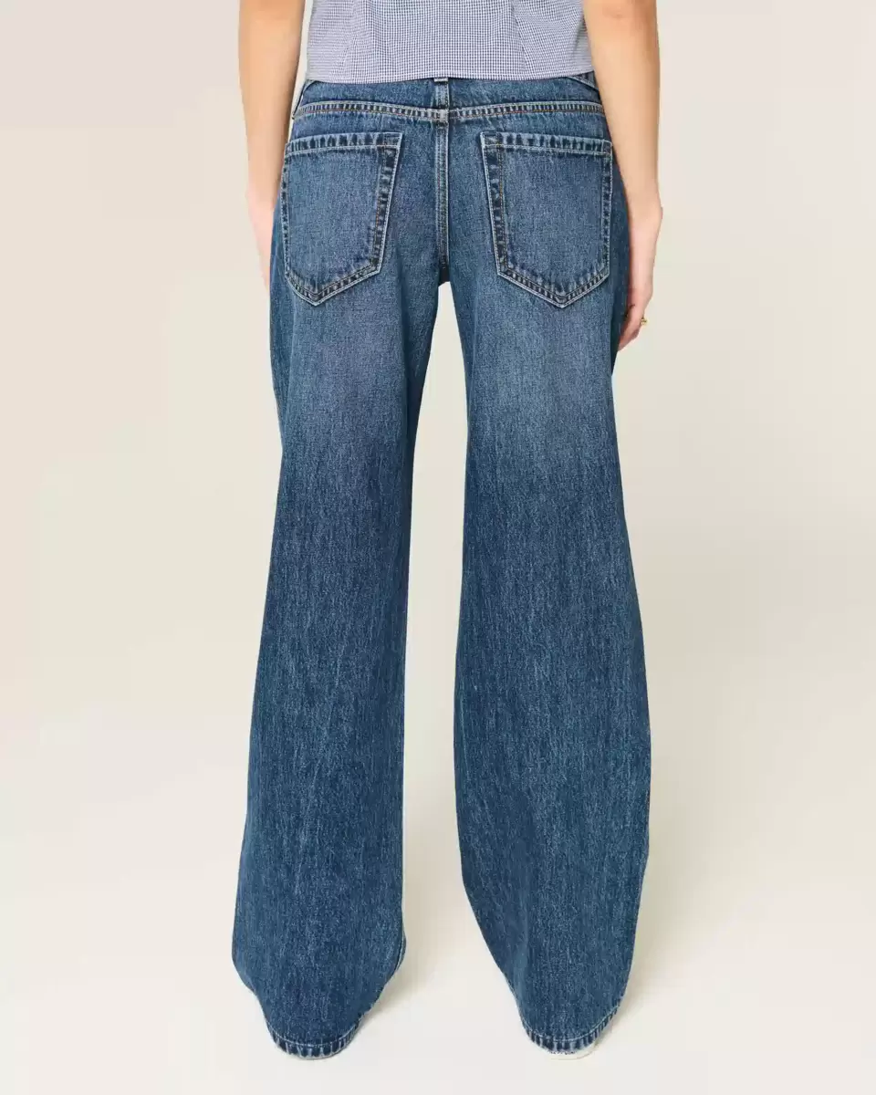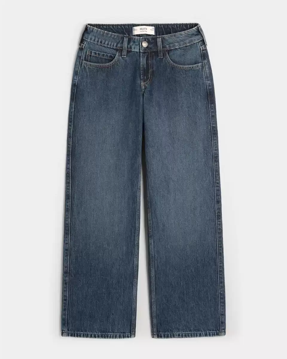 Comfortable denim jeans in a dark wash, designed with a baggy leg and flattering low-rise waist. Fading. Imported.