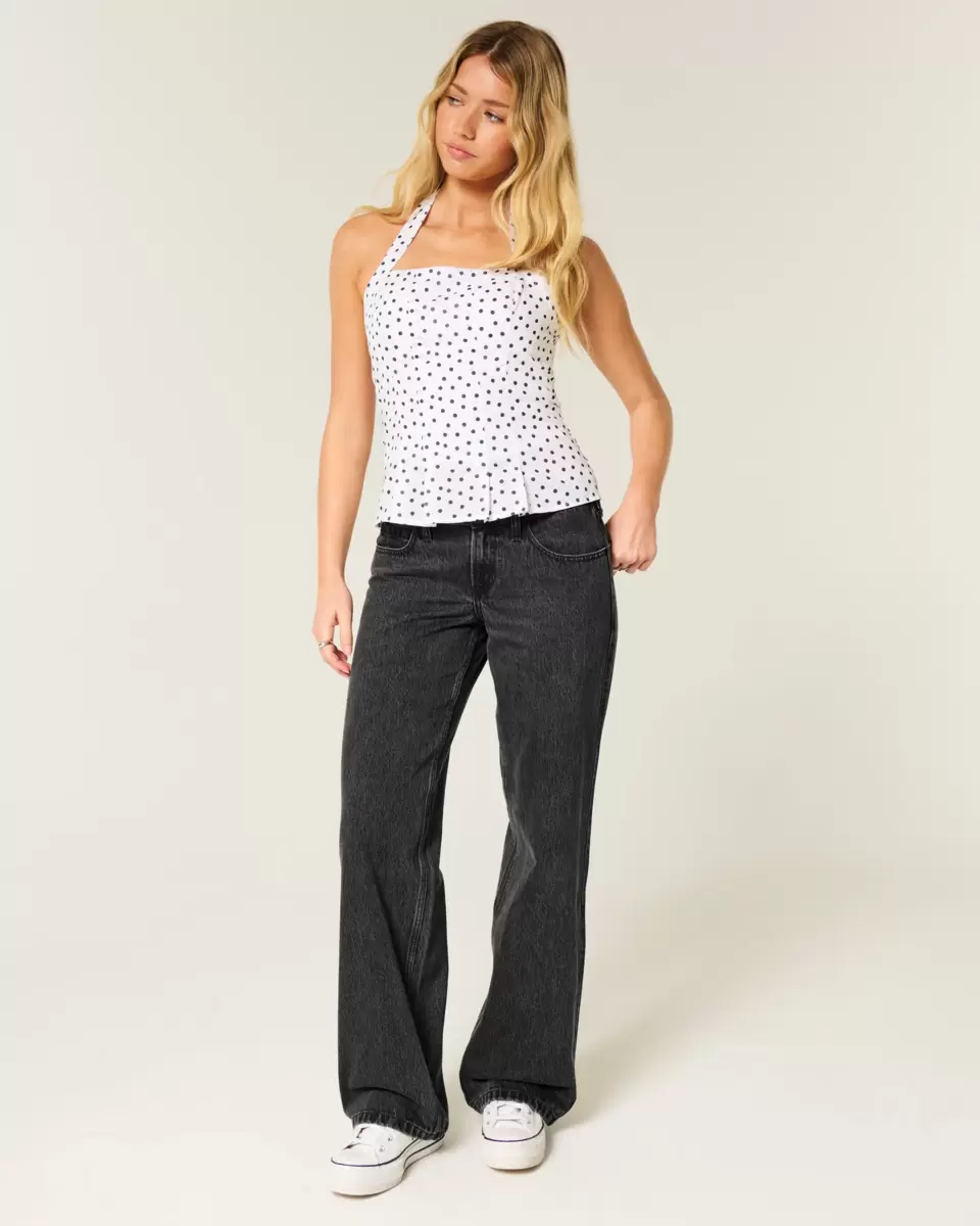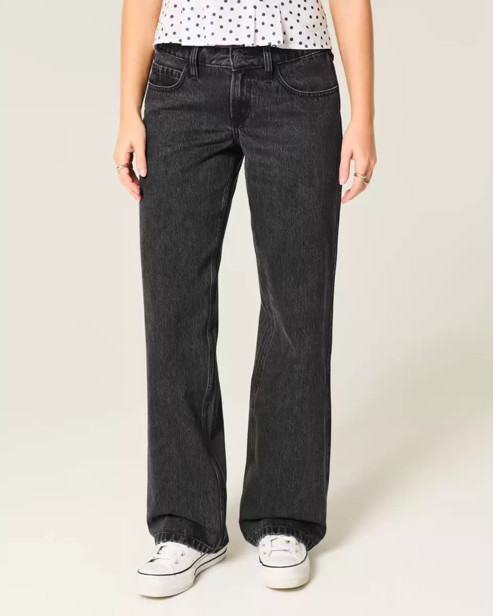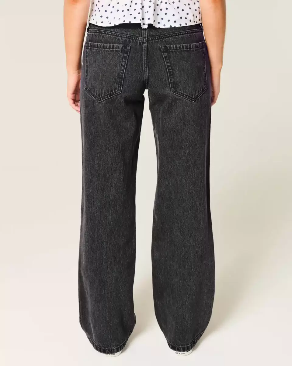 Comfortable denim jeans in washed black, designed with a baggy leg and flattering low-rise waist.