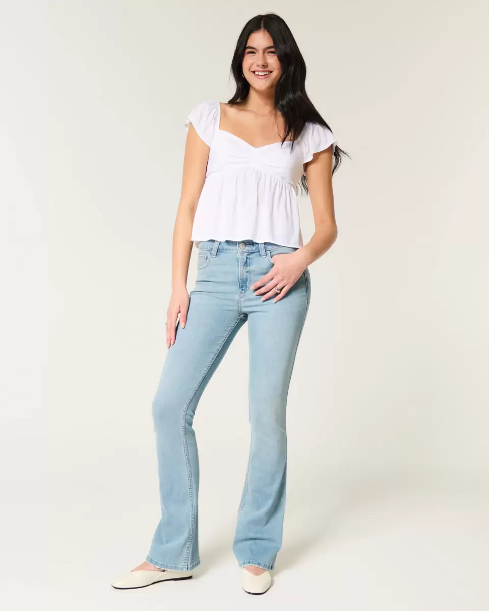 Cute and comfortable jeans in a light wash, designed with a flattering mid-rise waist, slim leg and boot hem. Fading and whiskering, Soft Stretch denim. Imported.