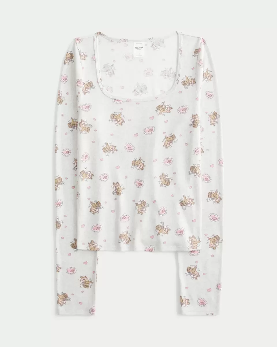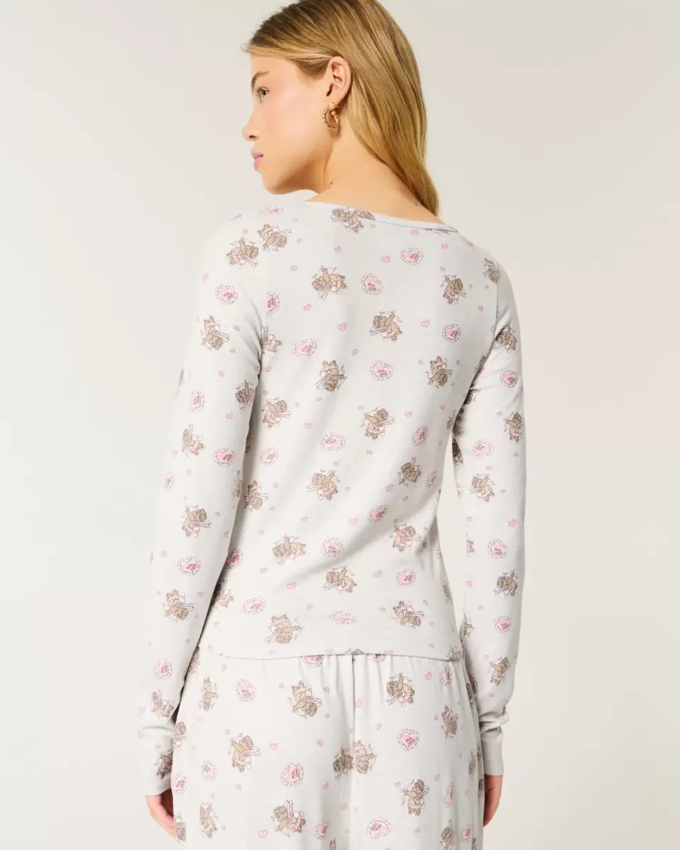 A super soft and cozy sleep top with long sleeves and all-over bear cupid graphic pattern. Easy Fit.
