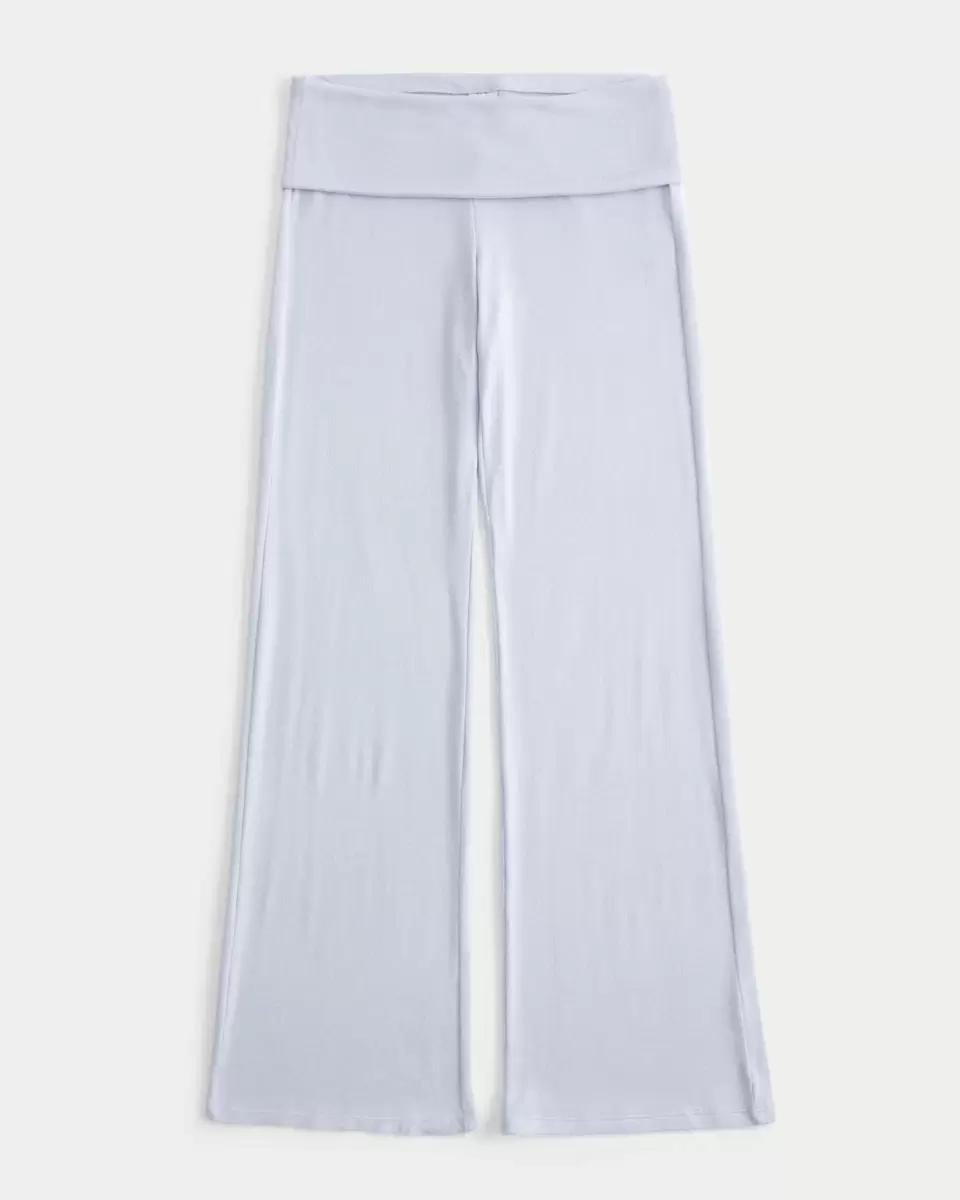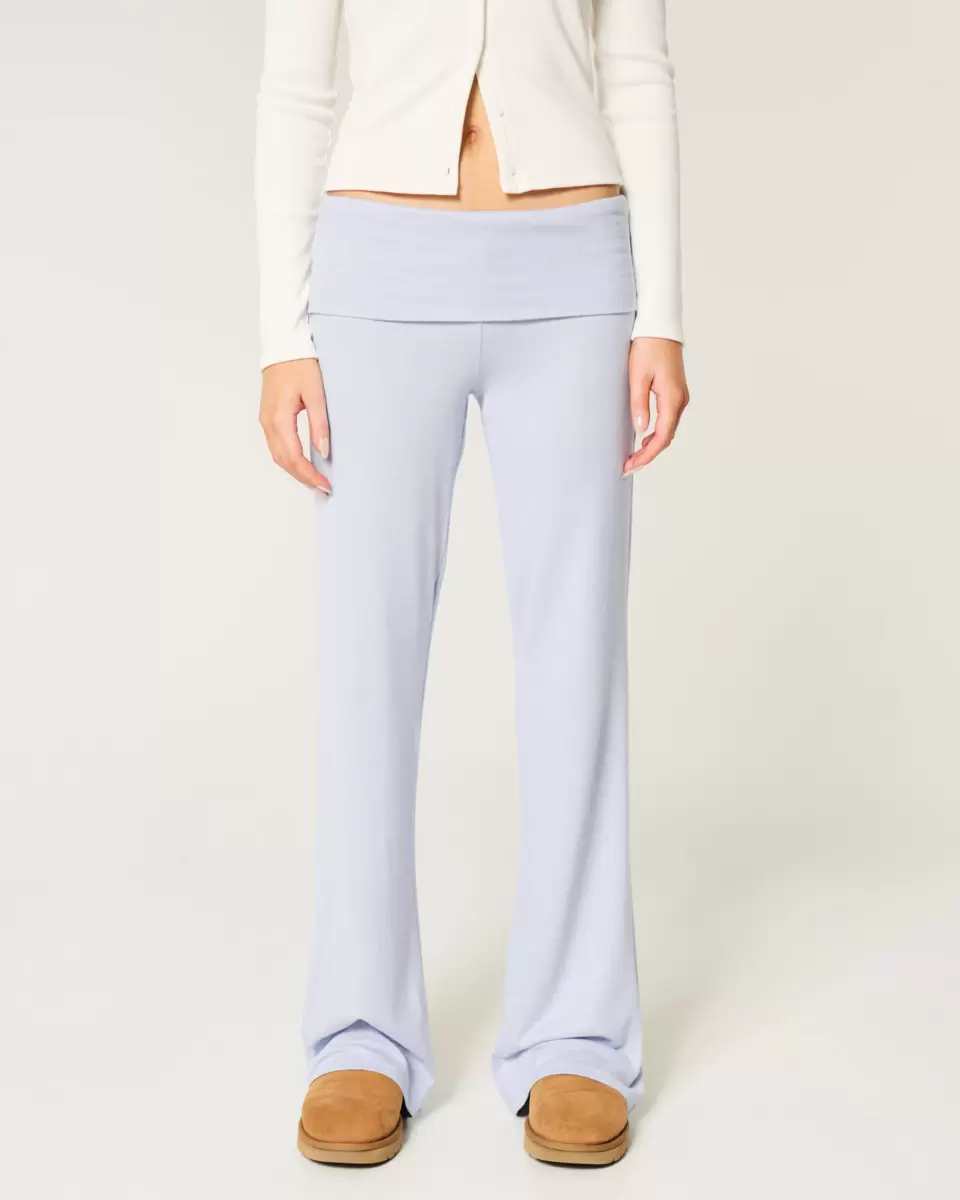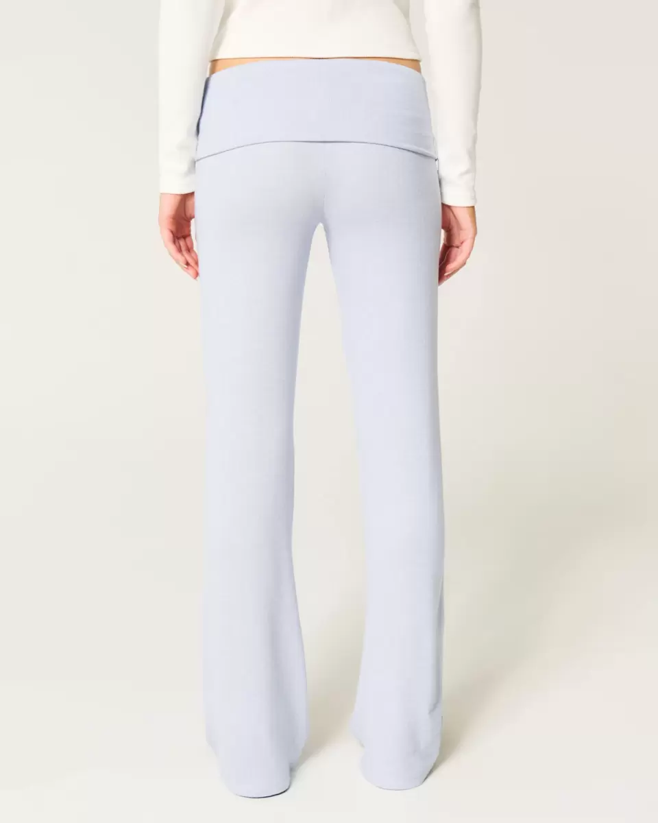 Super soft and cozy knit pants designed with a foldover waist and flared leg. Adjustable rise. Imported.