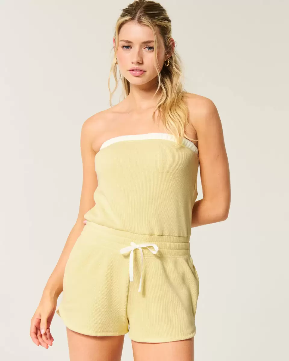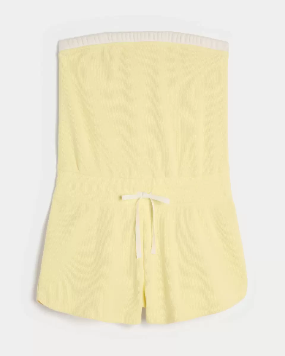 A cute and cozy onesie in super soft waffle fabric. Strapless, drawstring waist. Imported.