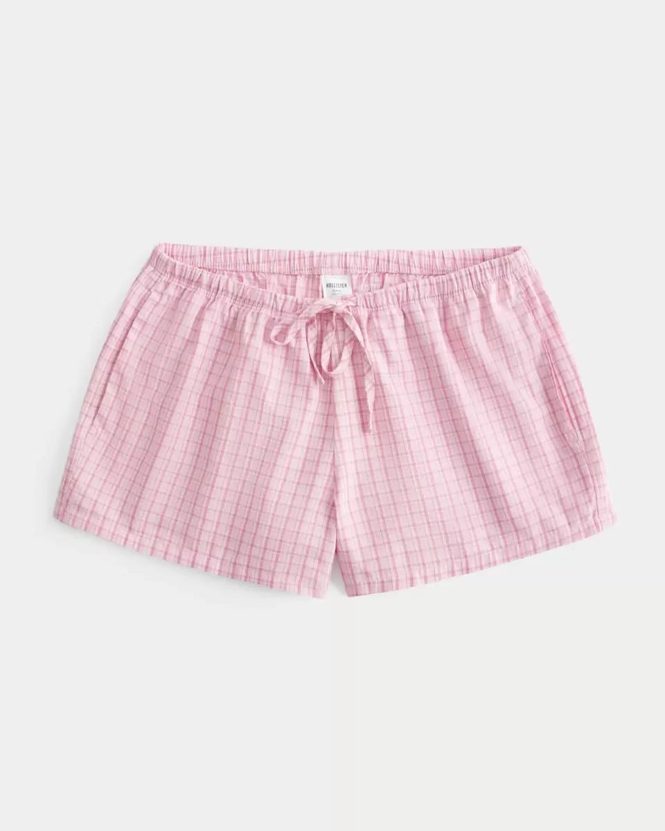Super soft sleep shorts in Oxford cotton with a classic check pattern and drawstring waist. Adjustable rise, pockets. Imported.