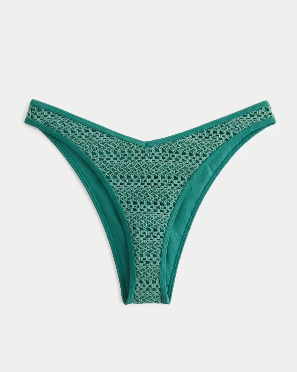 A cute and comfy bikini bottom in soft crochet-style fabric, designed with our cheekiest coverage. Imported.