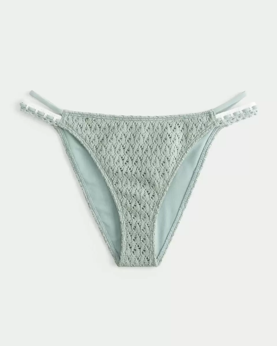 Your new fave bikini bottom is made with soft crochet-style swim fabric. Cheeky coverage, double side straps. Imported.