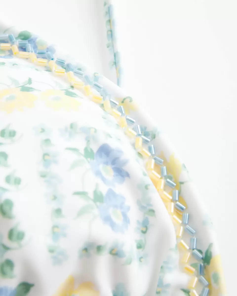 A cute bikini top designed with a classic triangle silhouette. Removable padding, adjustable straps, tie closure, bead details.