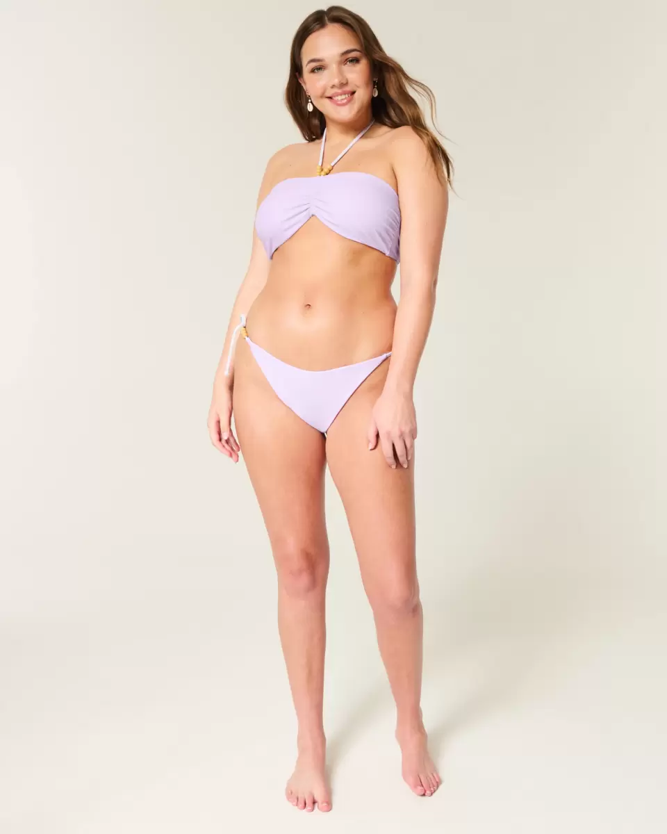 This super cute reversible bikini top can be styled as a halter or bandeau silhouette! Center tie detail with beads, tie closure. Imported.