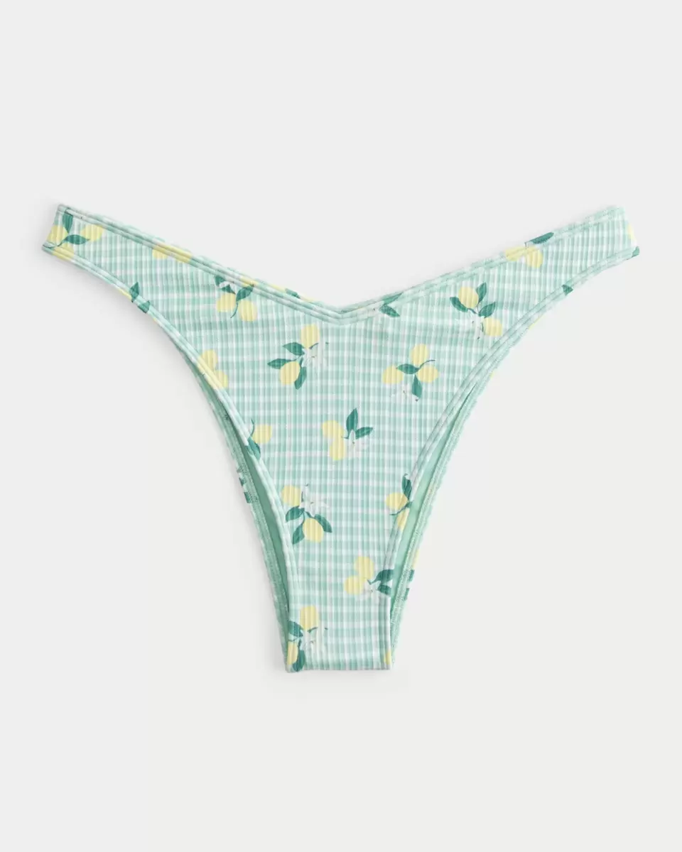 This super cute bikini bottom is made with soft ribbed swim fabric. High-leg silhouette, v-waist, our least amount of coverage. Imported.