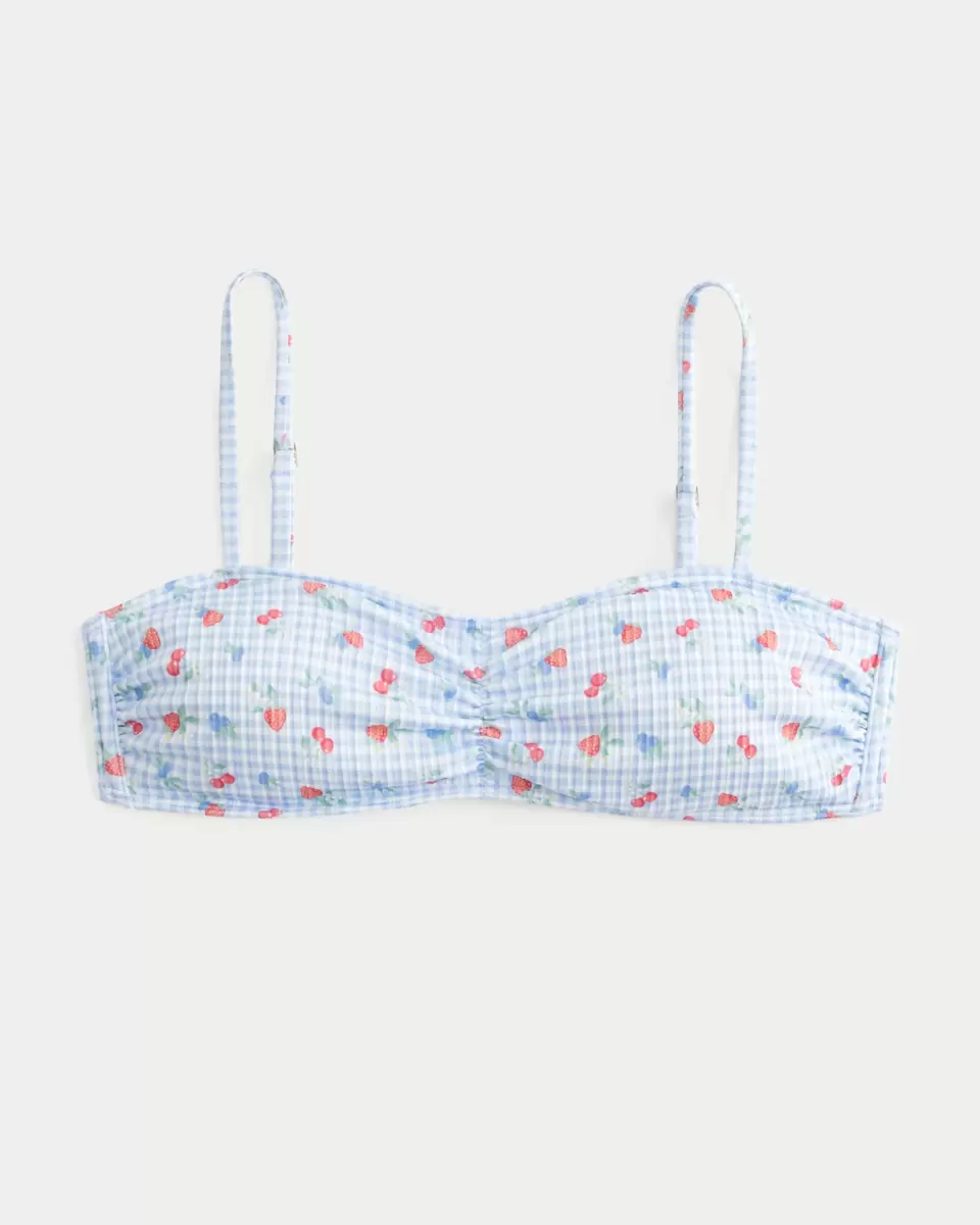 A super cute bikini top in soft ribbed swim fabric with a scoop neckline and cinched detailing at the center. Adjustable straps.